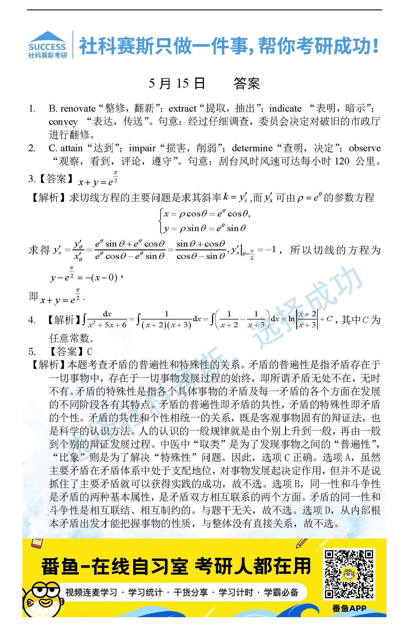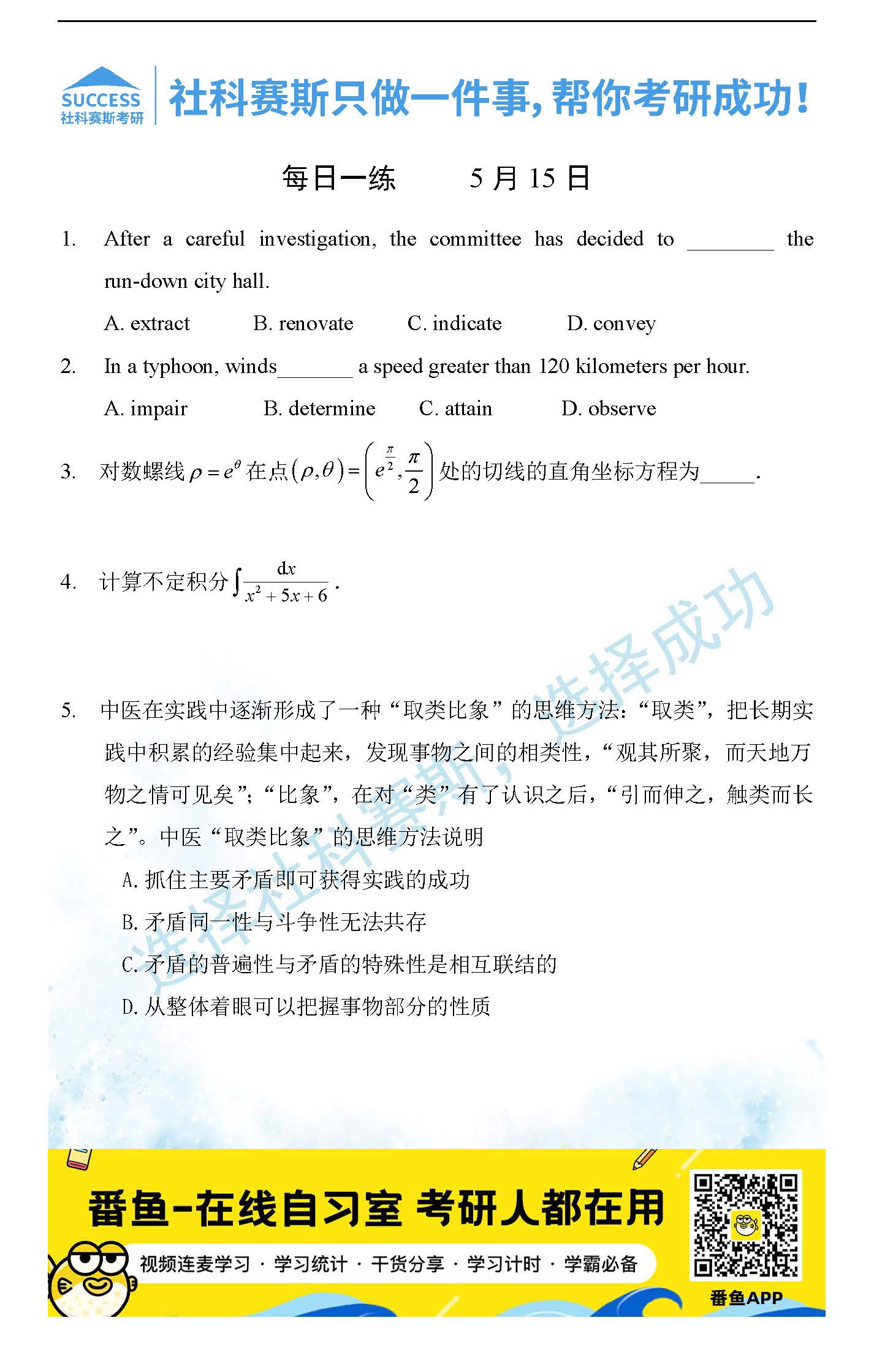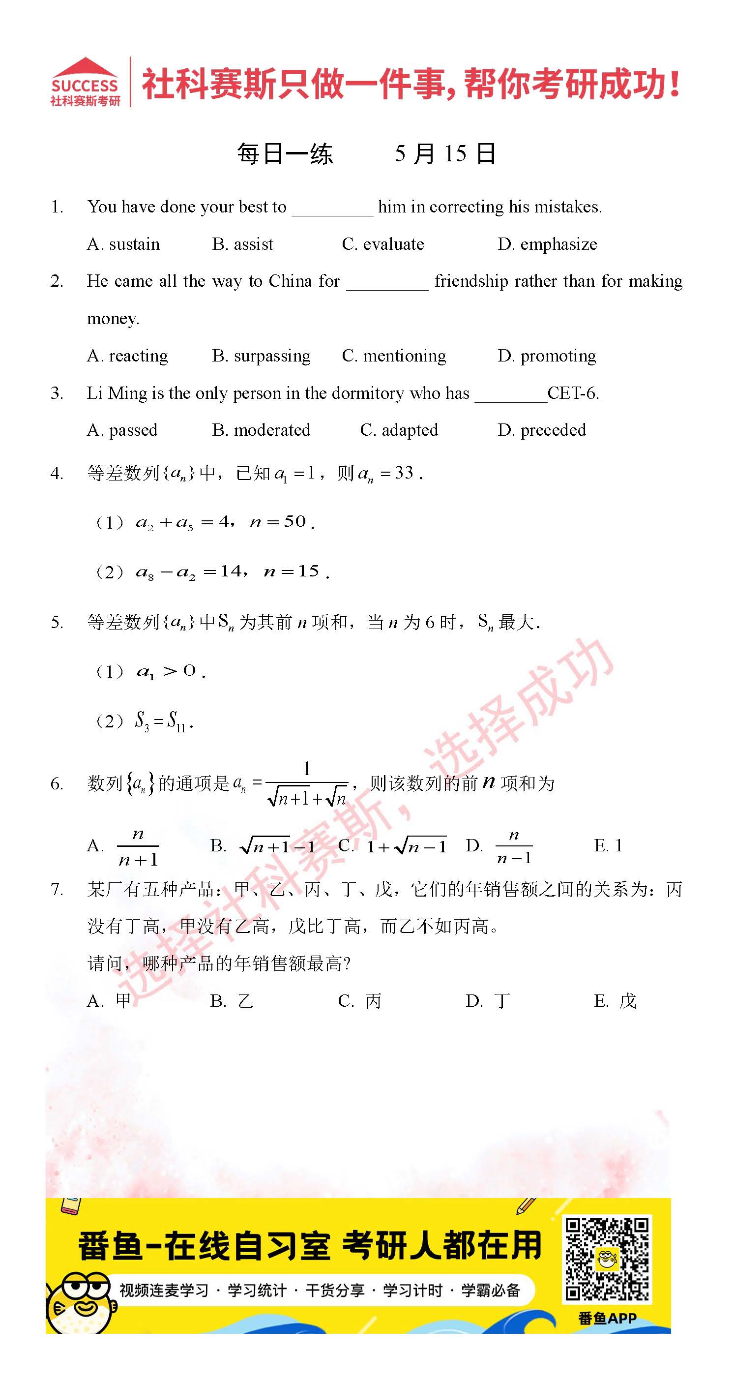 2022考研每日一練:5月15日管理類聯(lián)考每日一練及答案