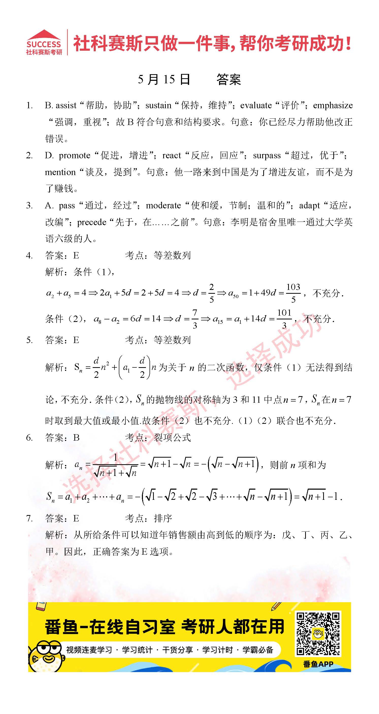 以上就是社科賽斯考研網(wǎng)小編為大家整理2022考研每日一練:5月15日管理類聯(lián)考每日一練及答案的全部內容,希望各位考生堅持利用起來,更多每日一練內容請持續(xù)關注社科賽斯考研網(wǎng)。
