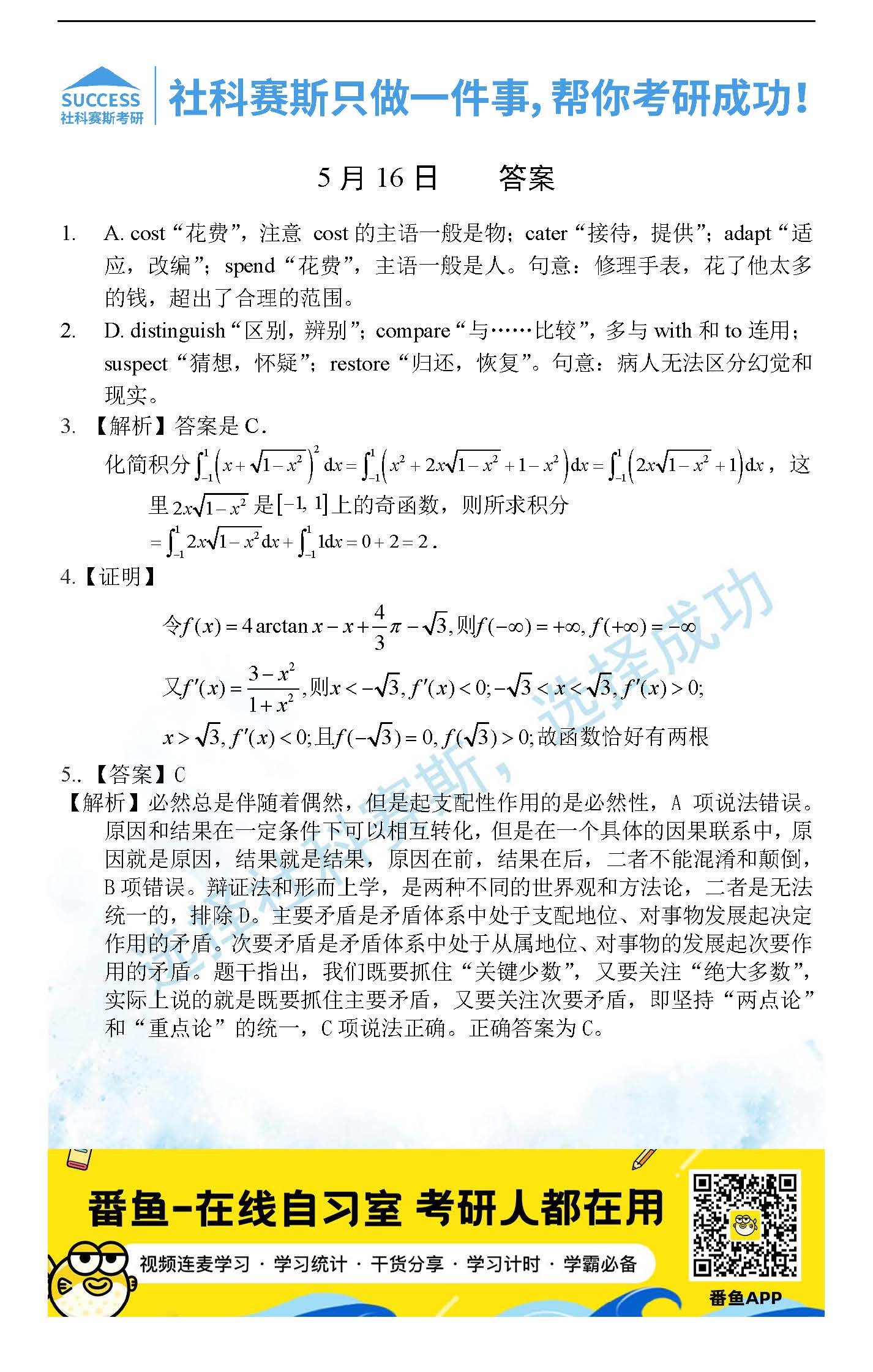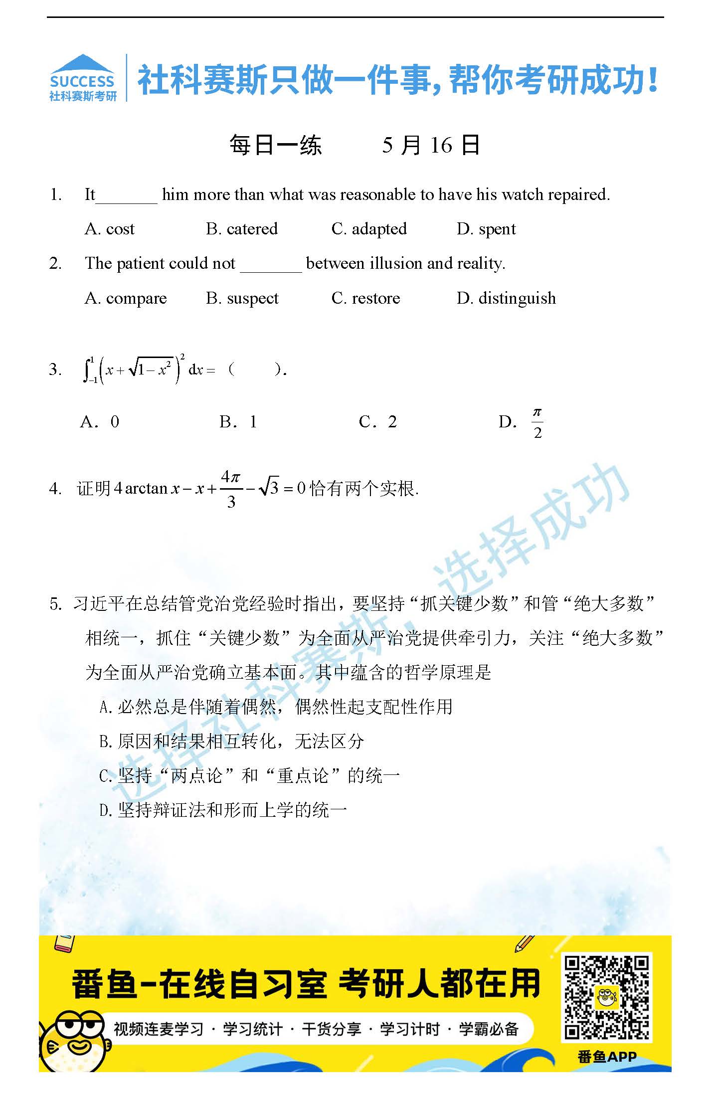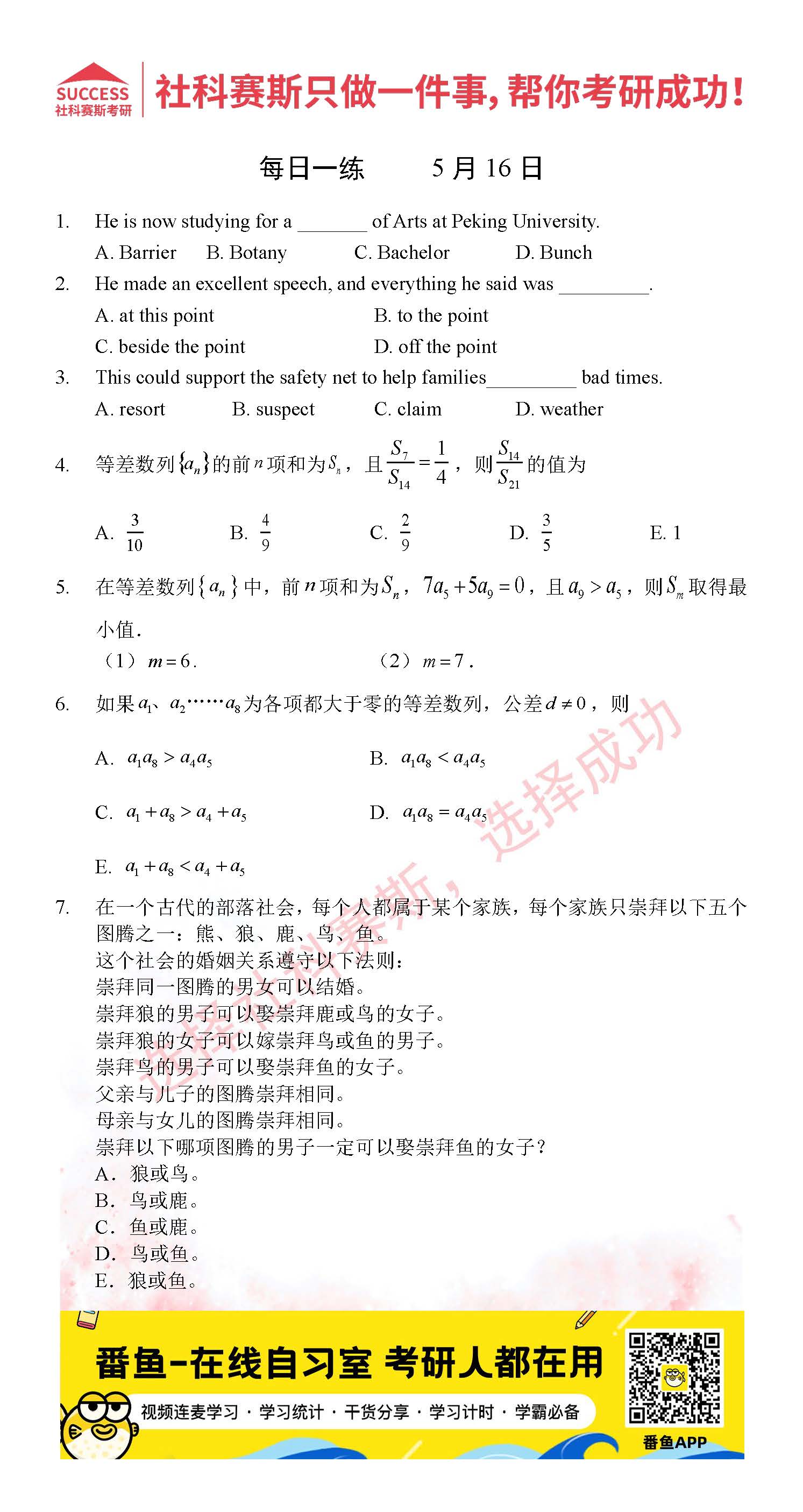 2022考研每日一練:5月16日管理類聯(lián)考每日一練及答案