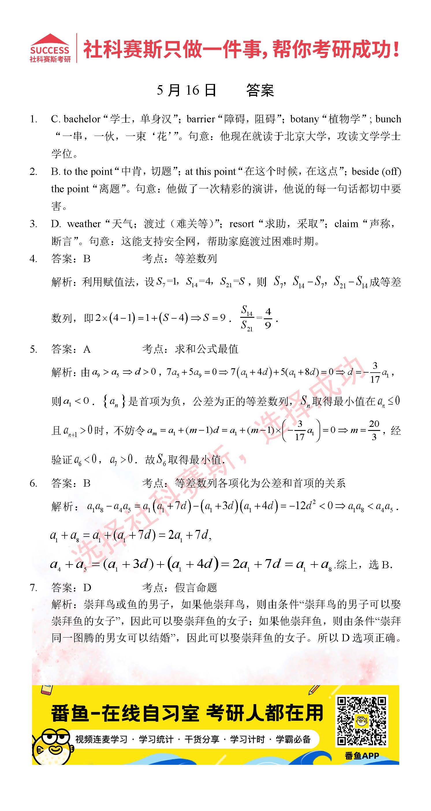考研是一場持久戰(zhàn),保持良好的學(xué)習(xí)習(xí)慣,是能確保復(fù)習(xí)高效的關(guān)鍵。今天社科賽斯考研網(wǎng)小編整理了“2022考研每日一練:5月16管理類聯(lián)考每日一練及答案”的內(nèi)容,希望能對廣大考生有所幫助。