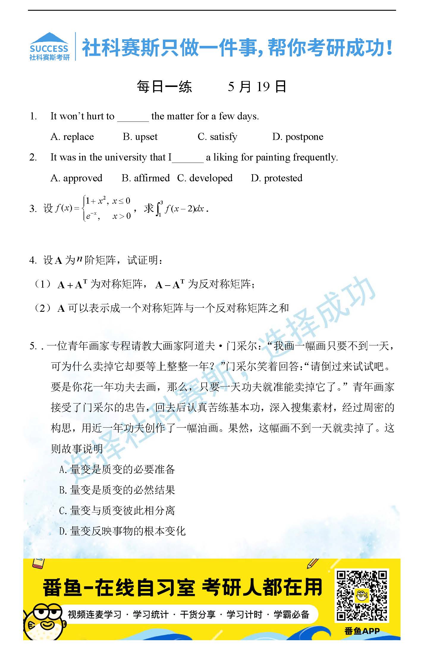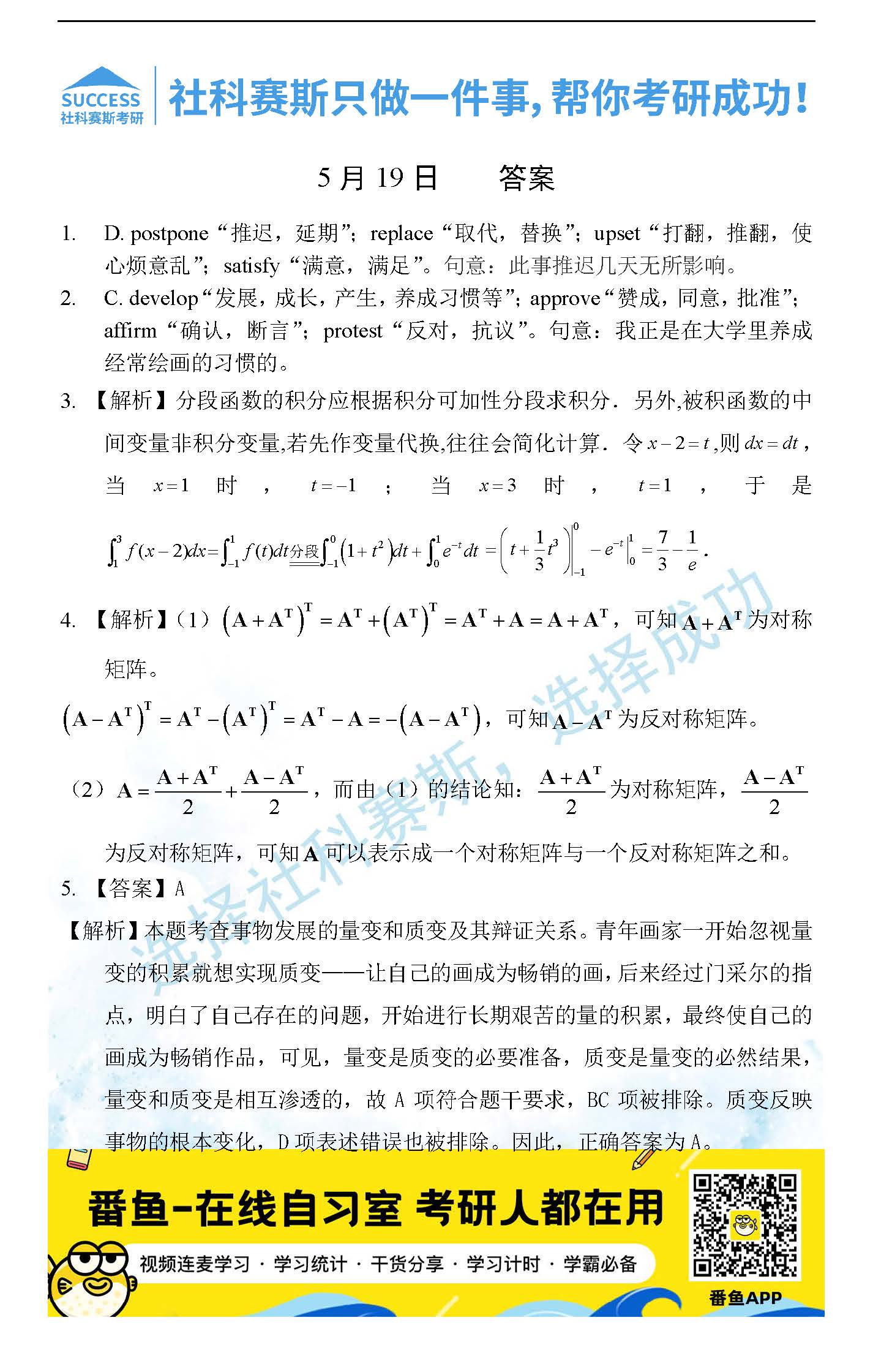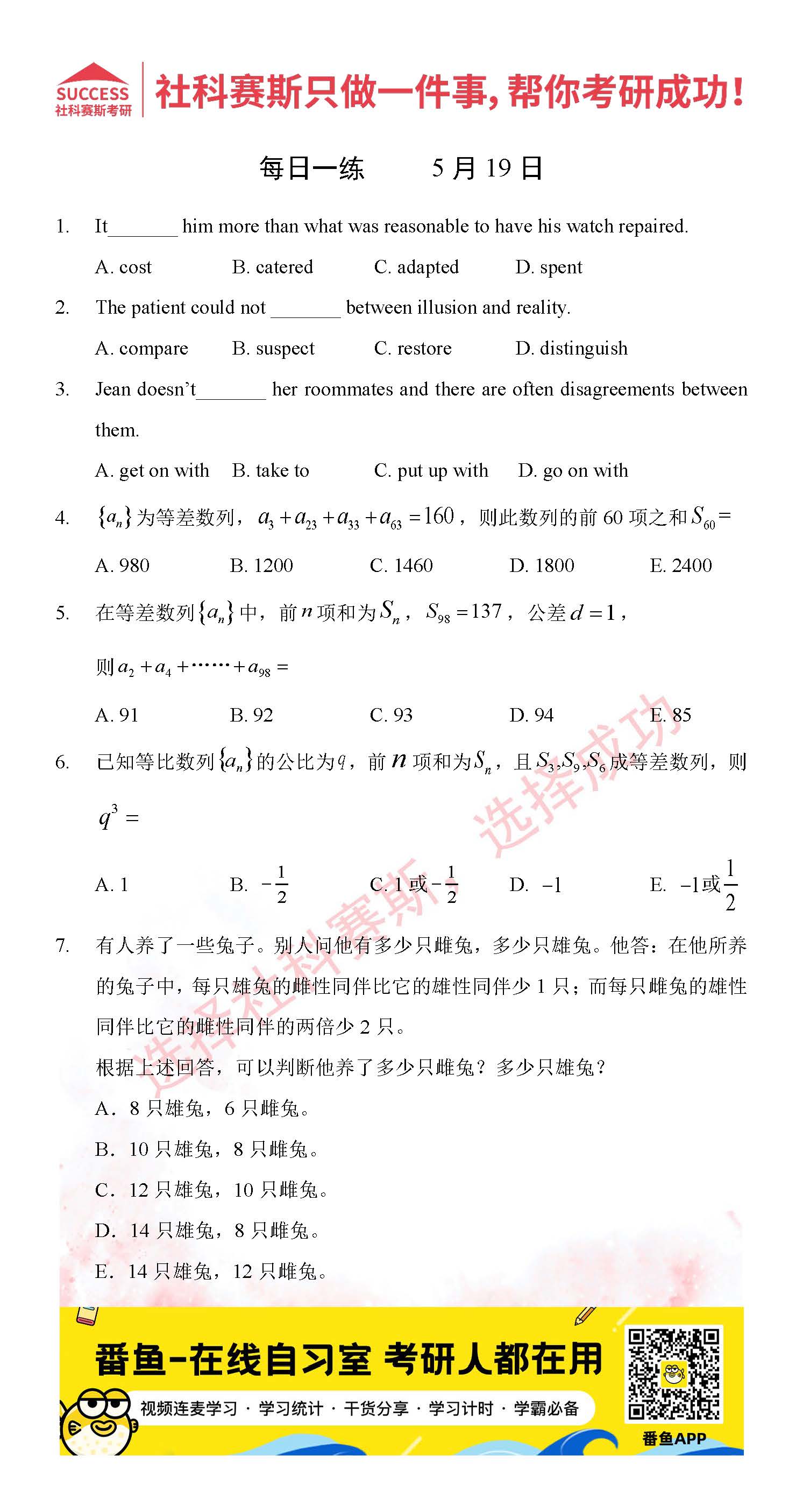 2022考研每日一練:5月19日管理類聯(lián)考每日一練及答案