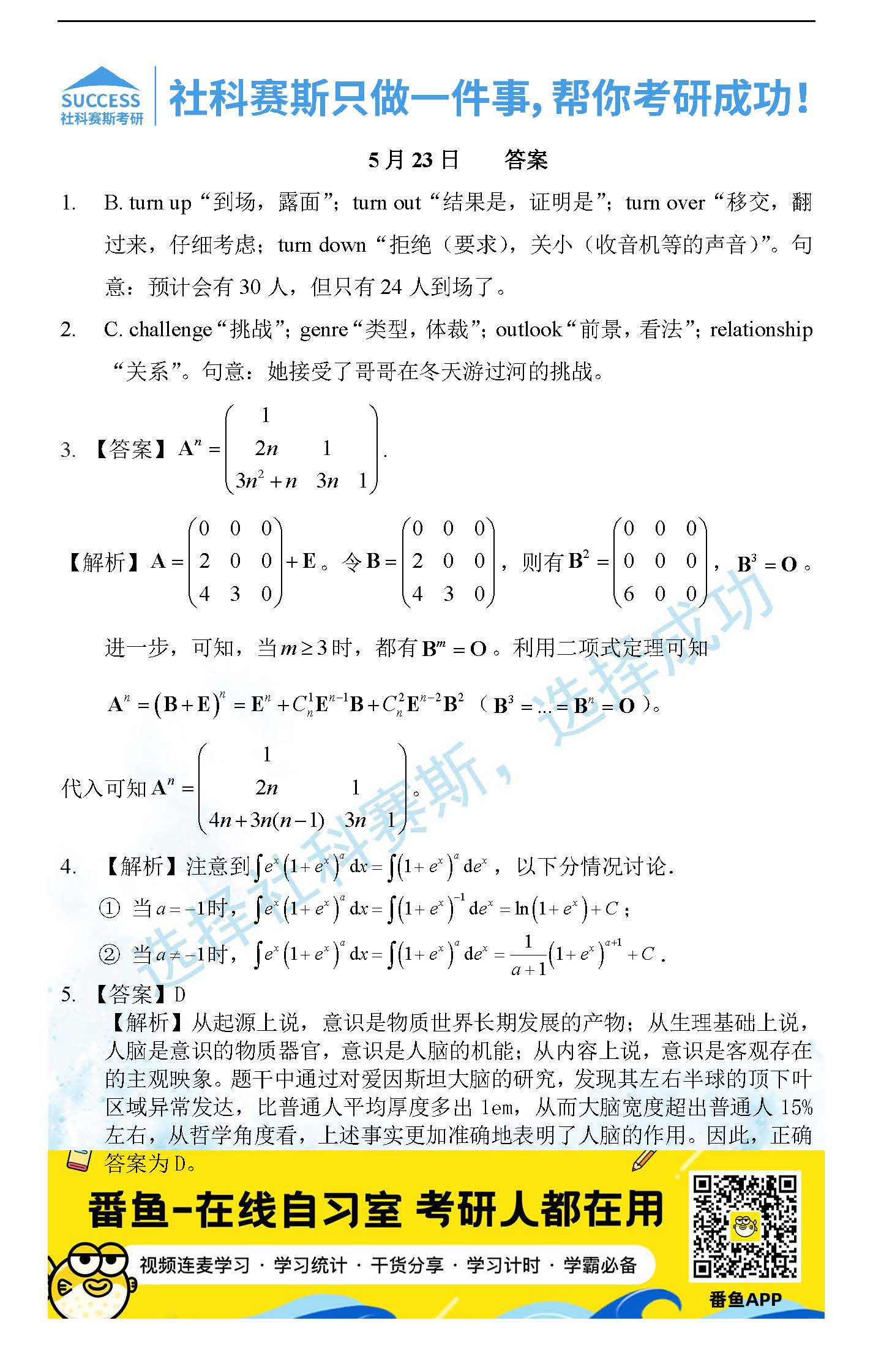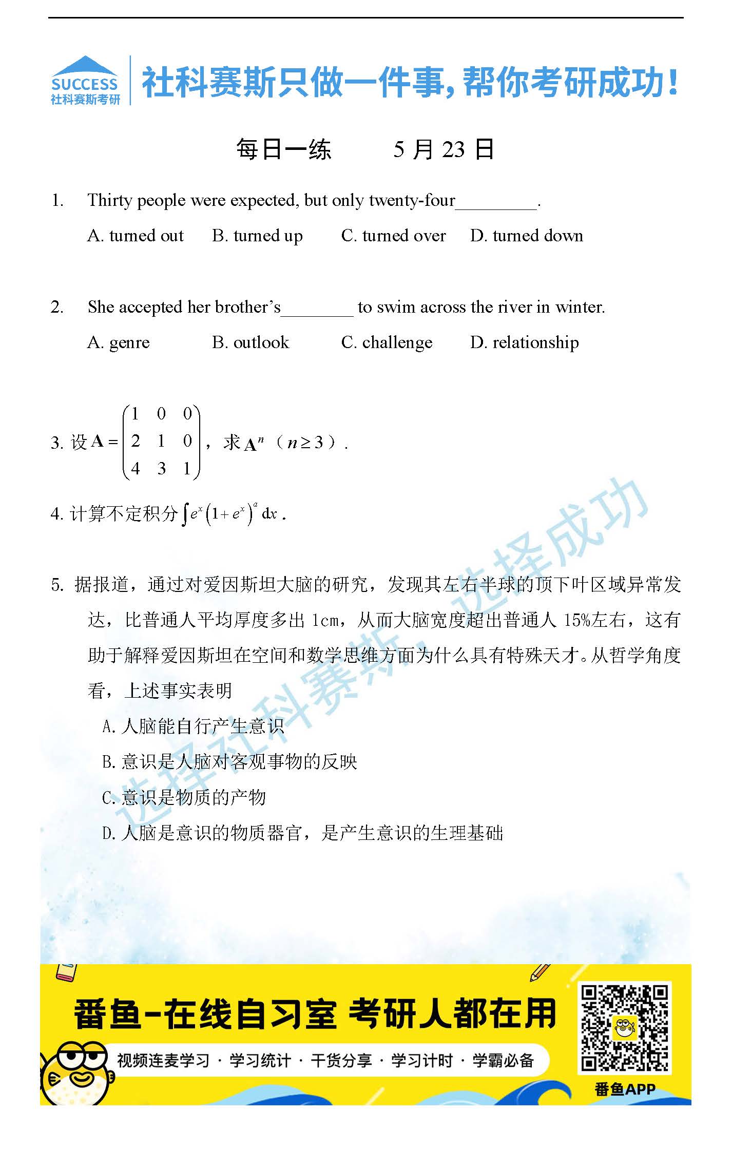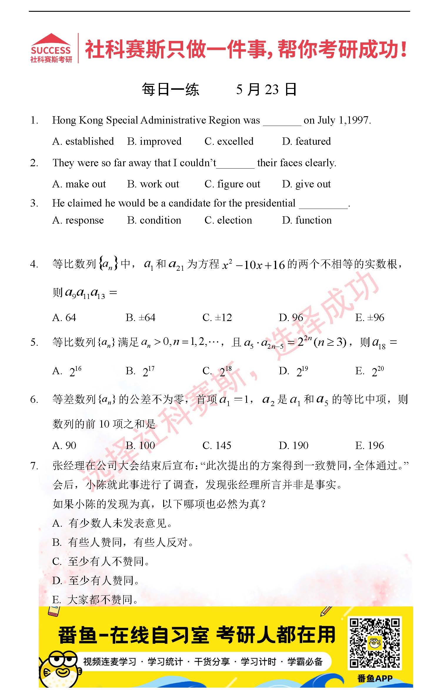 2022考研每日一練:5月23日管理類聯(lián)考每日一練及答案
