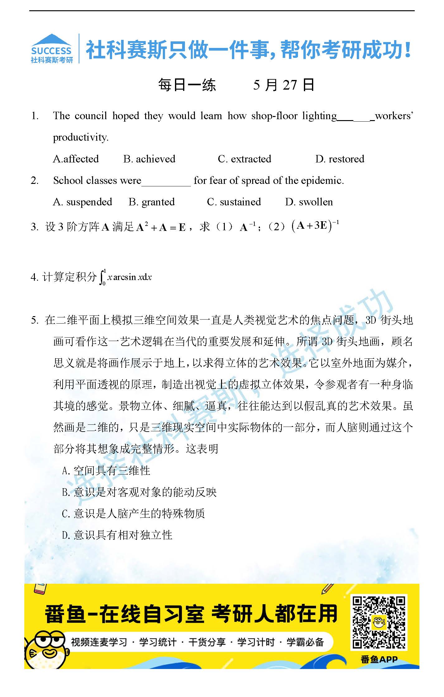 當(dāng)前位置: 考研每日一練 > 2022考研每日一練:5月27日管理類聯(lián)考每日一練及答案