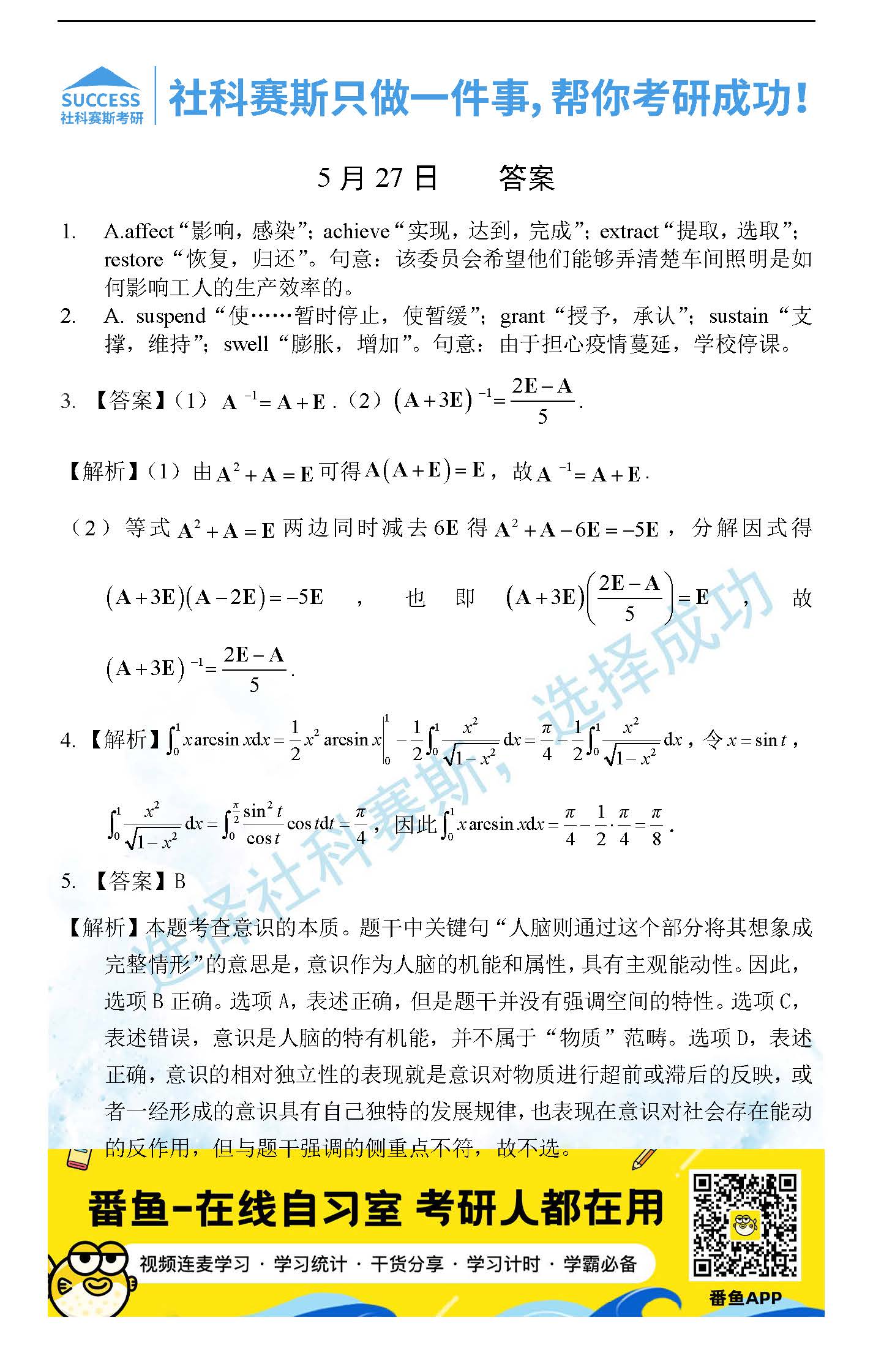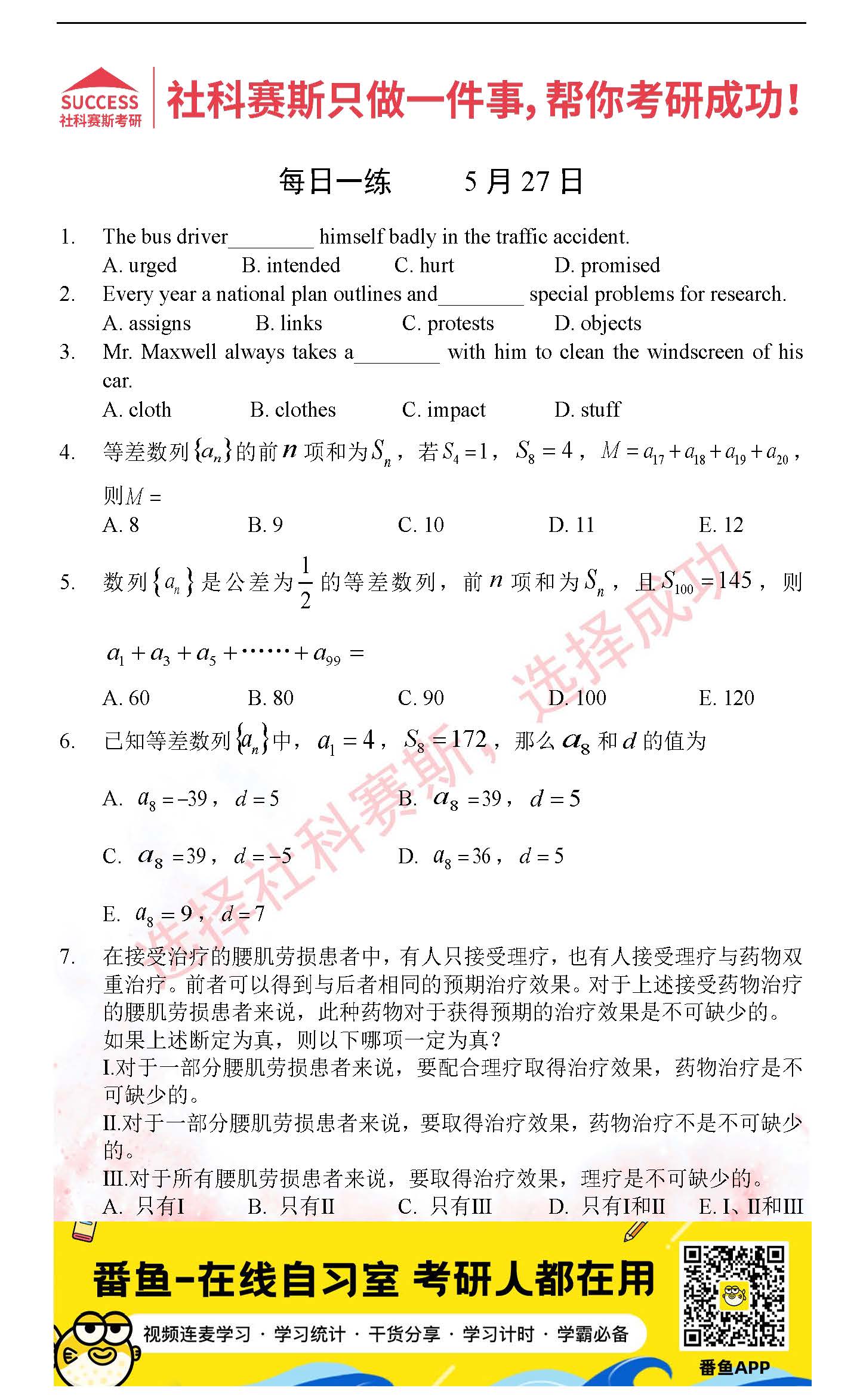 2022考研每日一練:5月27日管理類聯(lián)考每日一練及答案