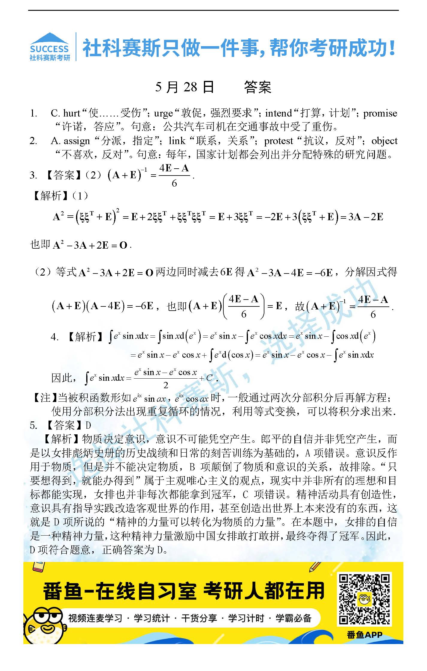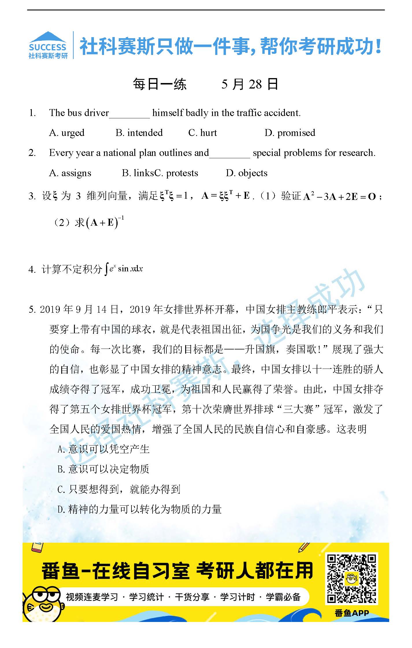 考研是一場持久戰(zhàn),保持良好的學習習慣,是能確保復習高效的關(guān)鍵。今天社科賽斯考研網(wǎng)小編整理了“2022考研每日一練:5月28日管理類聯(lián)考每日一練及答案”的內(nèi)容,希望能對廣大考生有所幫助。