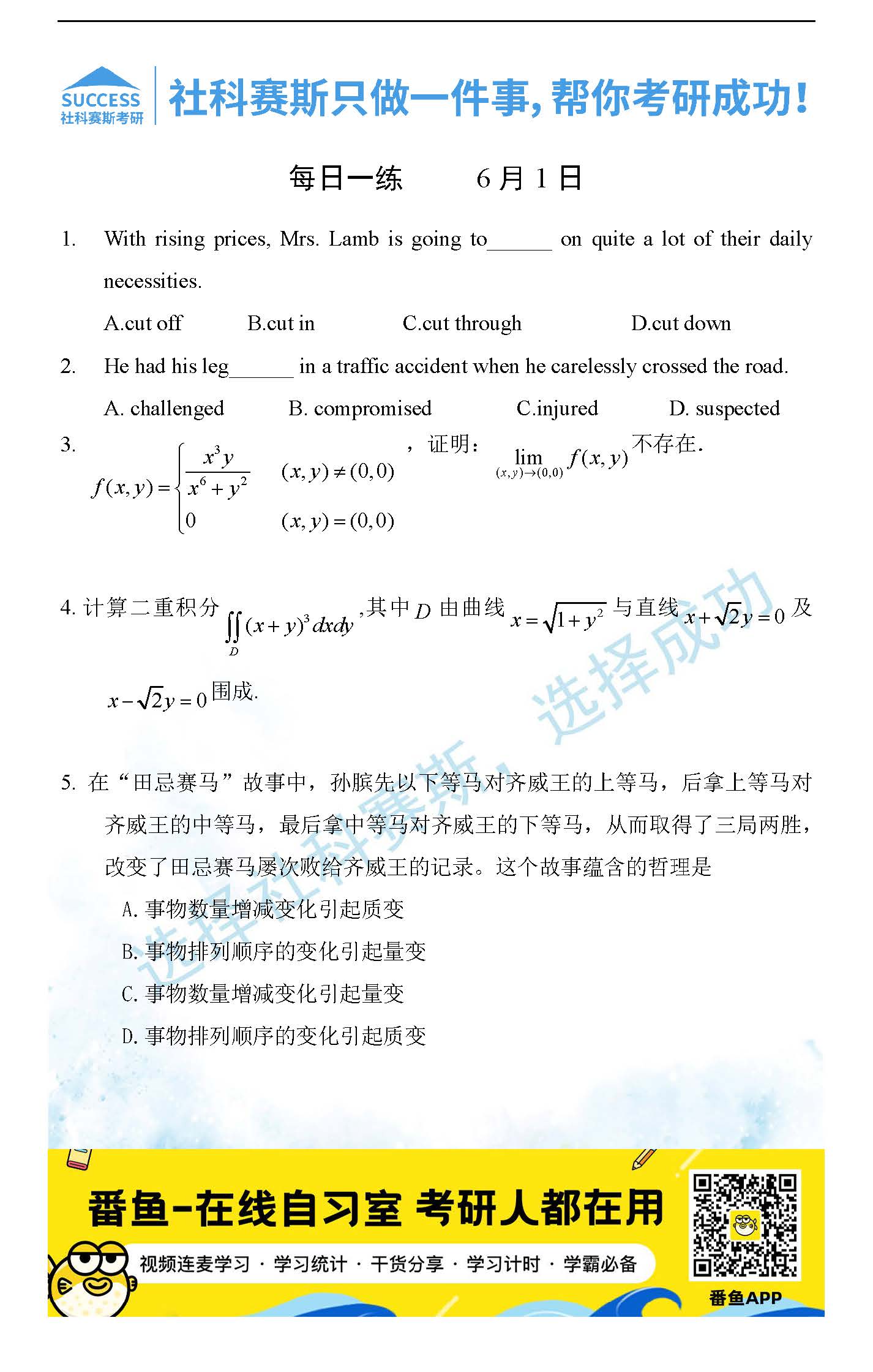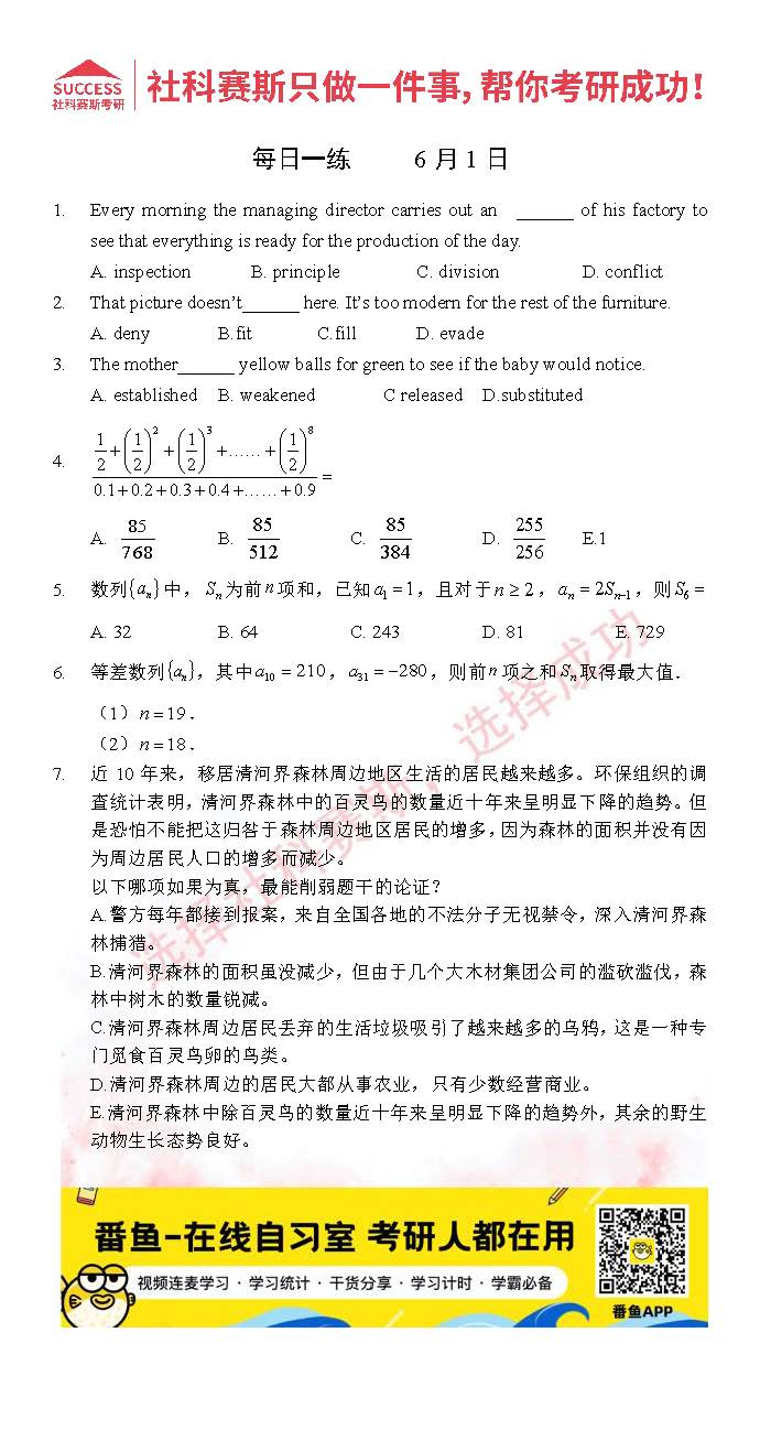 考研是一場(chǎng)持久戰(zhàn),保持良好的學(xué)習(xí)習(xí)慣,是能確保復(fù)習(xí)高效的關(guān)鍵。今天社科賽斯考研網(wǎng)小編整理了“2022考研每日一練:6月1日管理類(lèi)聯(lián)考每日一練及答案”的內(nèi)容,希望能對(duì)廣大考生有所幫助。