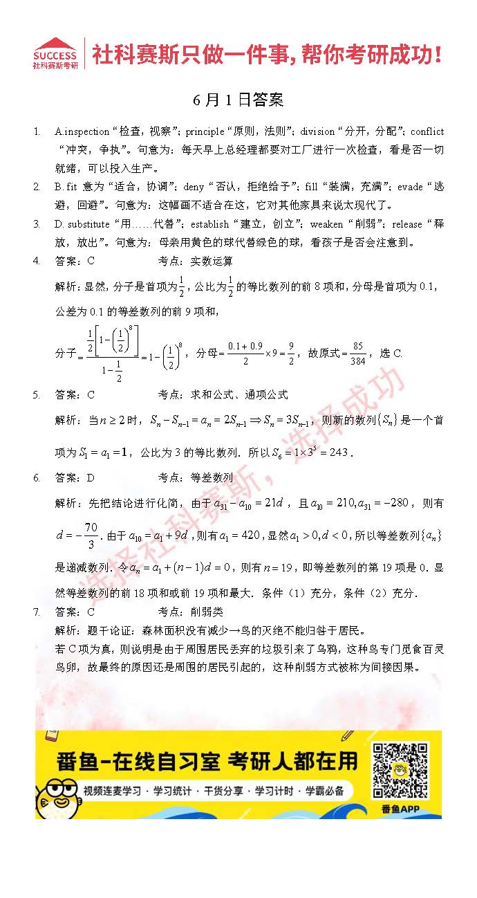 2022考研每日一練:6月1日管理類(lèi)聯(lián)考每日一練及答案