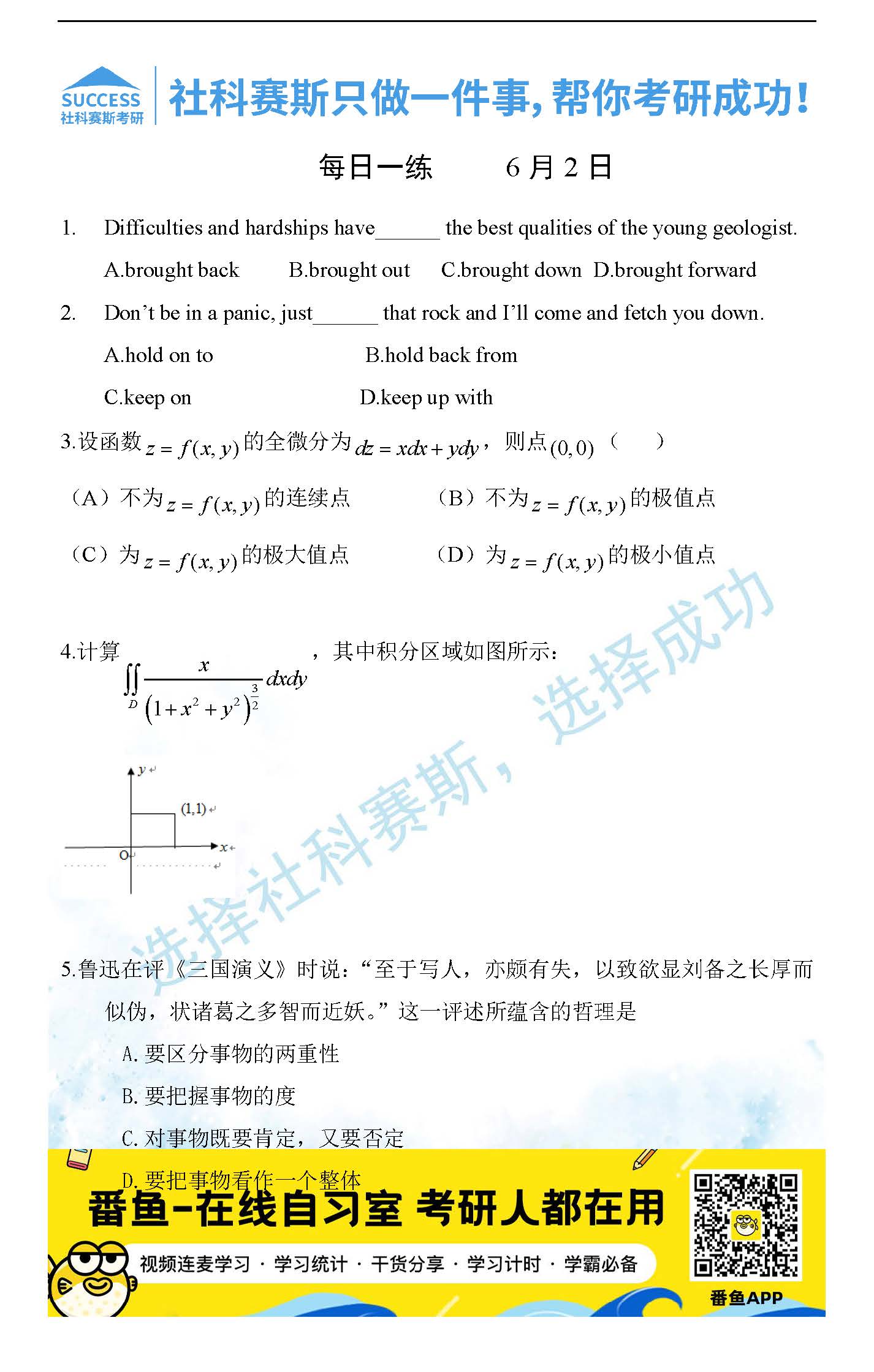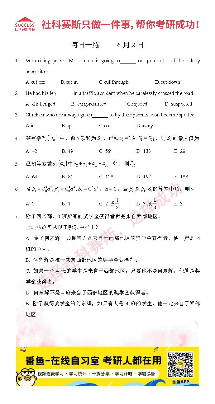 2022考研每日一練:6月2日管理類聯(lián)考每日一練及答案