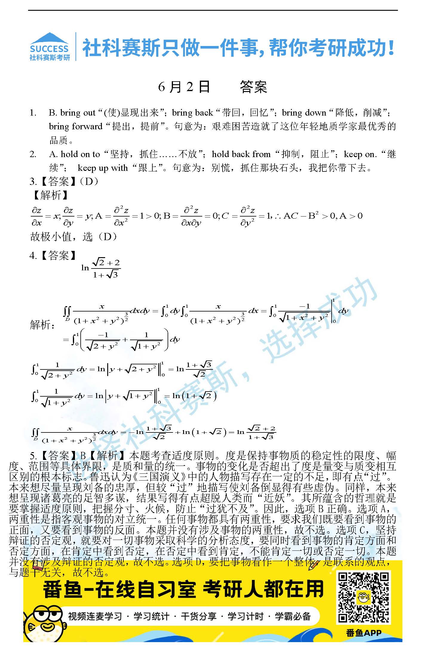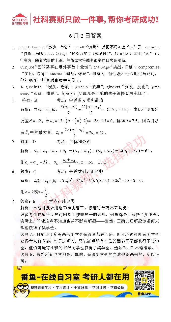 以上就是社科賽斯考研網(wǎng)小編為大家整理2022考研每日一練:6月2日管理類聯(lián)考每日一練及答案的全部?jī)?nèi)容,希望各位考生堅(jiān)持利用起來,更多每日一練內(nèi)容請(qǐng)持續(xù)關(guān)注社科賽斯考研網(wǎng)。