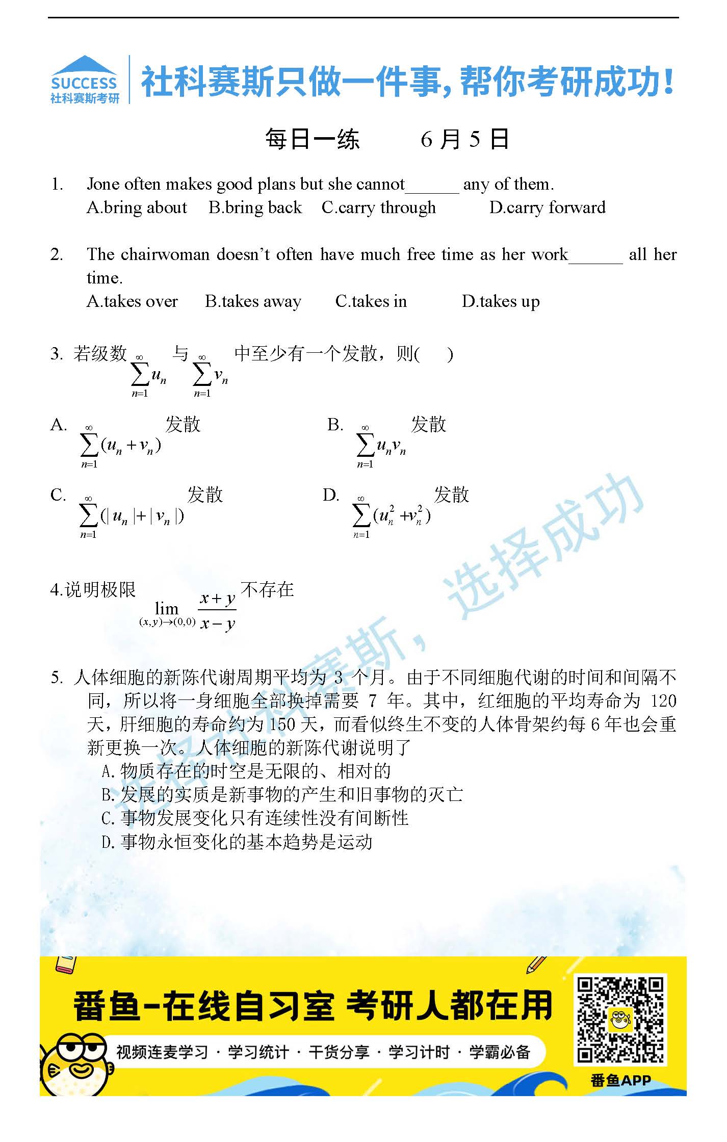 以上就是社科賽斯考研網(wǎng)小編為大家整理2022考研每日一練:6月5日管理類聯(lián)考每日一練及答案的全部內(nèi)容,希望各位考生堅持利用起來,更多每日一練內(nèi)容請持續(xù)關(guān)注社科賽斯考研網(wǎng)。
