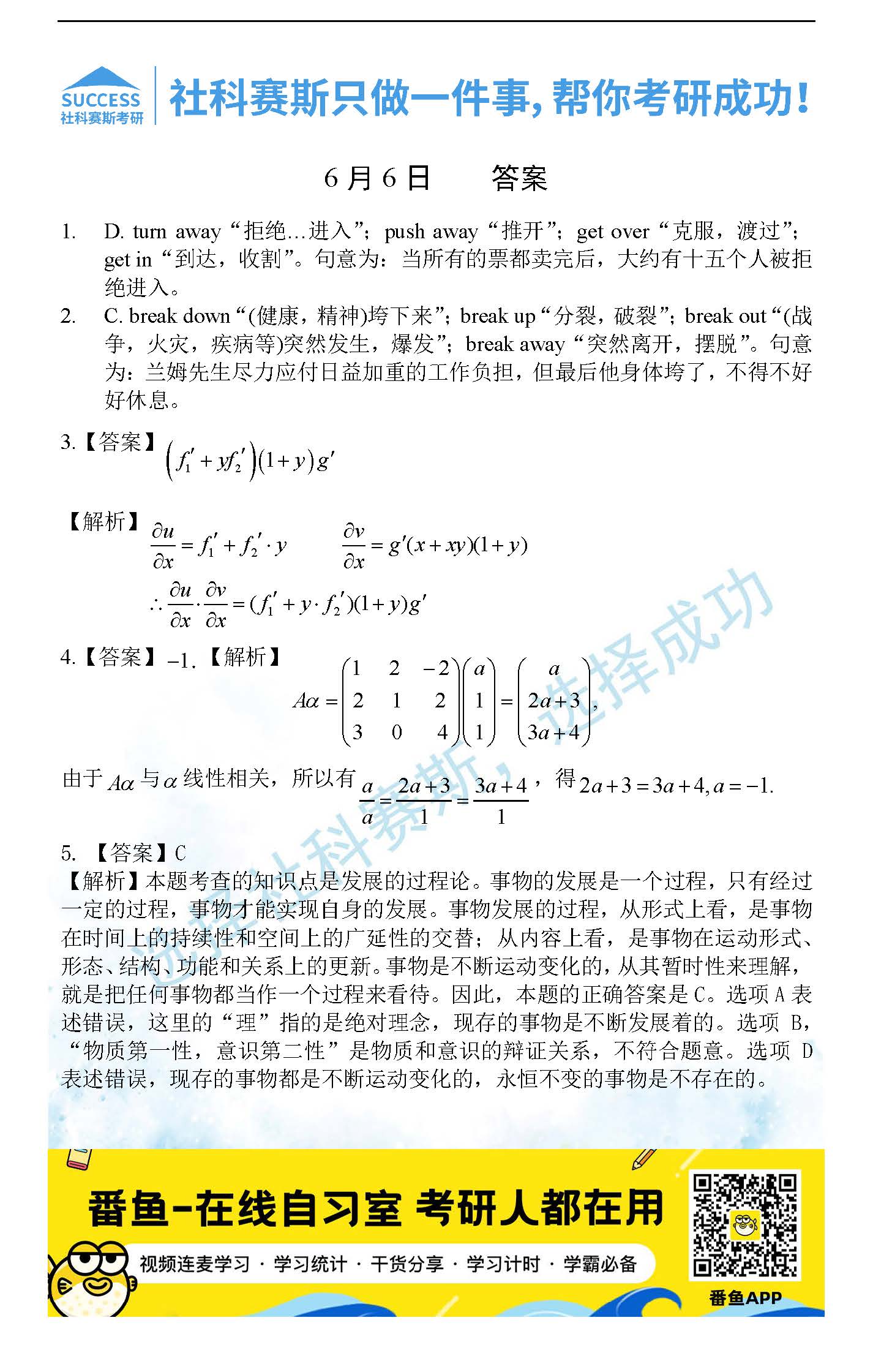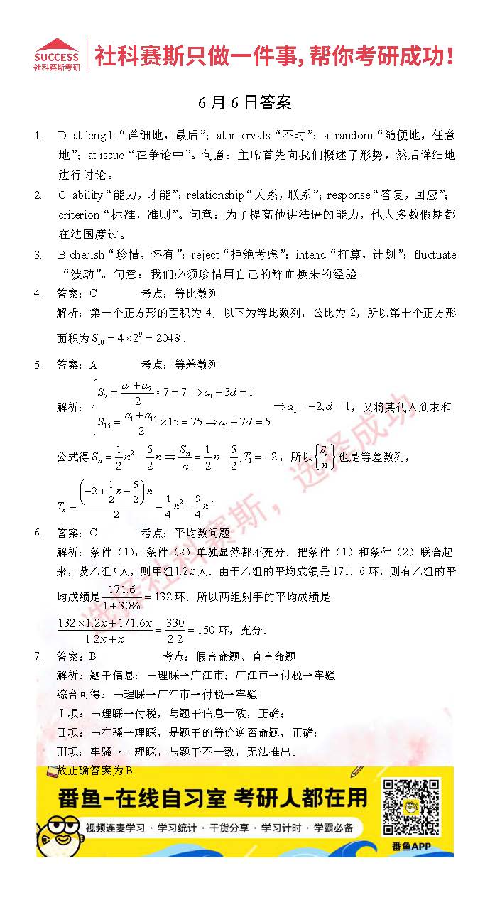 以上就是社科賽斯考研網(wǎng)小編為大家整理2022考研每日一練:6月6日管理類聯(lián)考每日一練及答案的全部內(nèi)容,希望各位考生堅持利用起來,更多每日一練內(nèi)容請持續(xù)關(guān)注社科賽斯考研網(wǎng)。