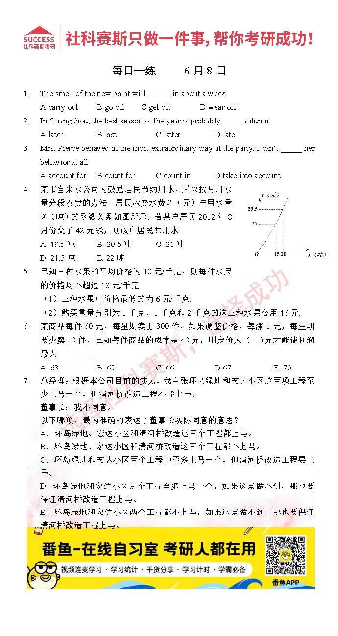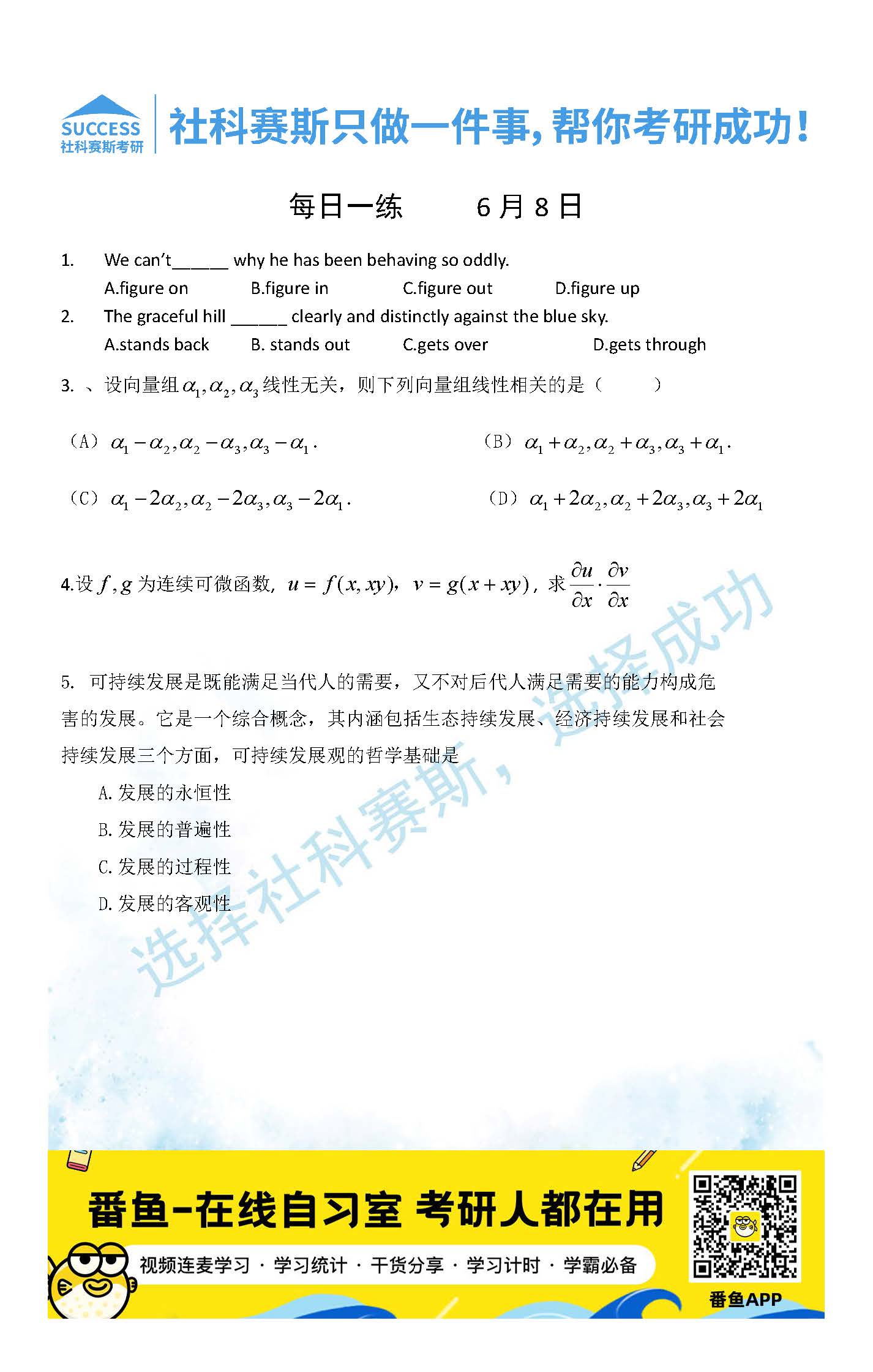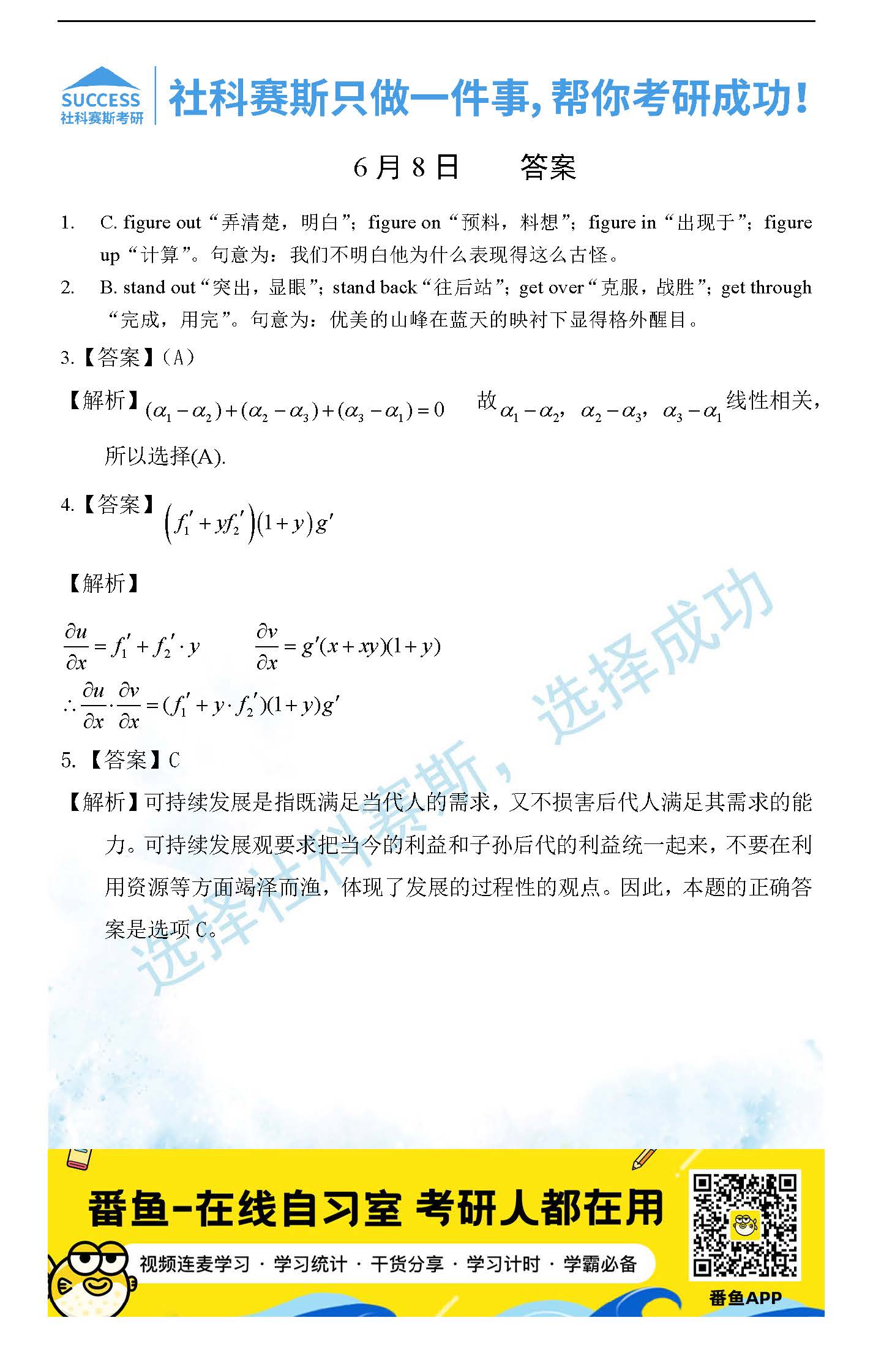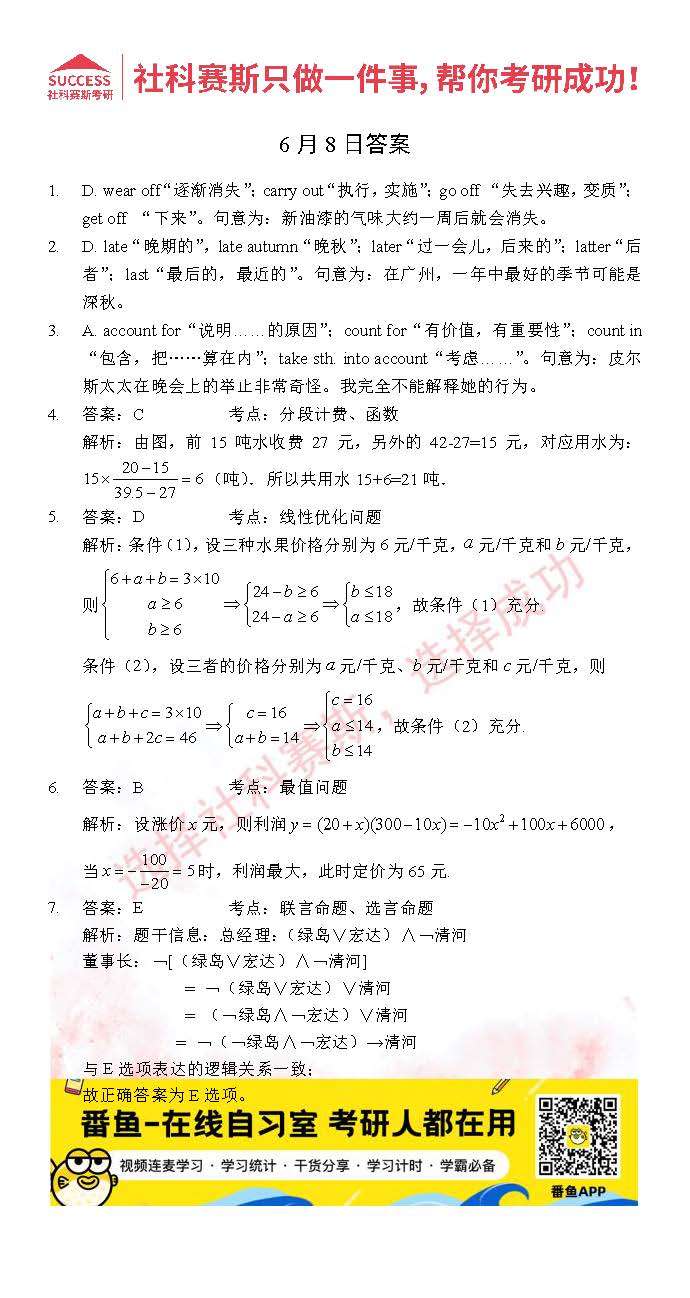 以上就是社科賽斯考研網(wǎng)小編為大家整理2022考研每日一練:6月8日管理類聯(lián)考每日一練及答案的全部內(nèi)容,希望各位考生堅持利用起來,更多每日一練內(nèi)容請持續(xù)關(guān)注社科賽斯考研網(wǎng)。