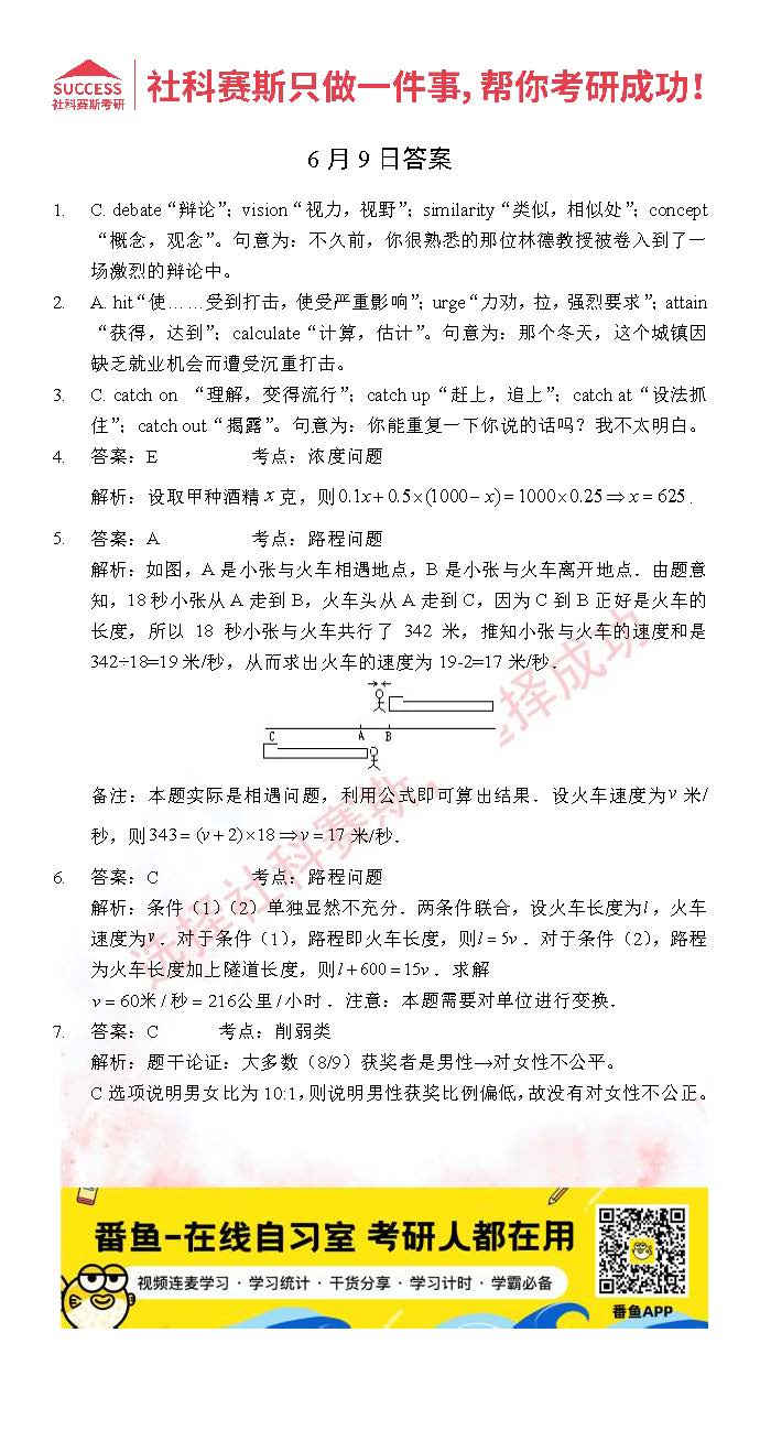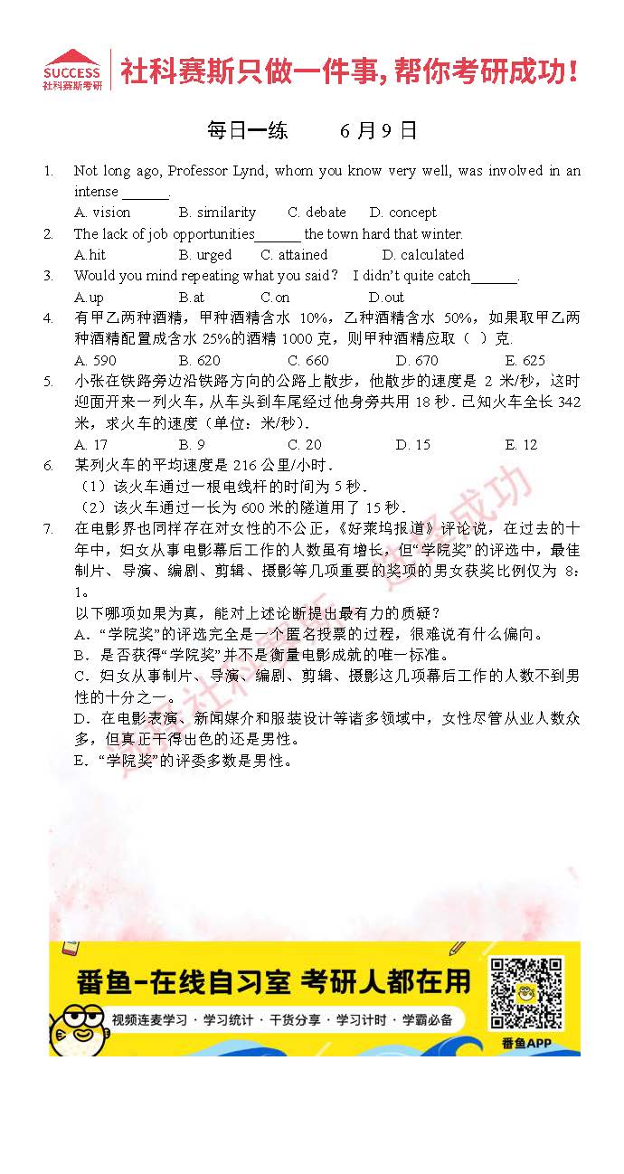 2022考研每日一練:6月9日管理類聯(lián)考每日一練及答案