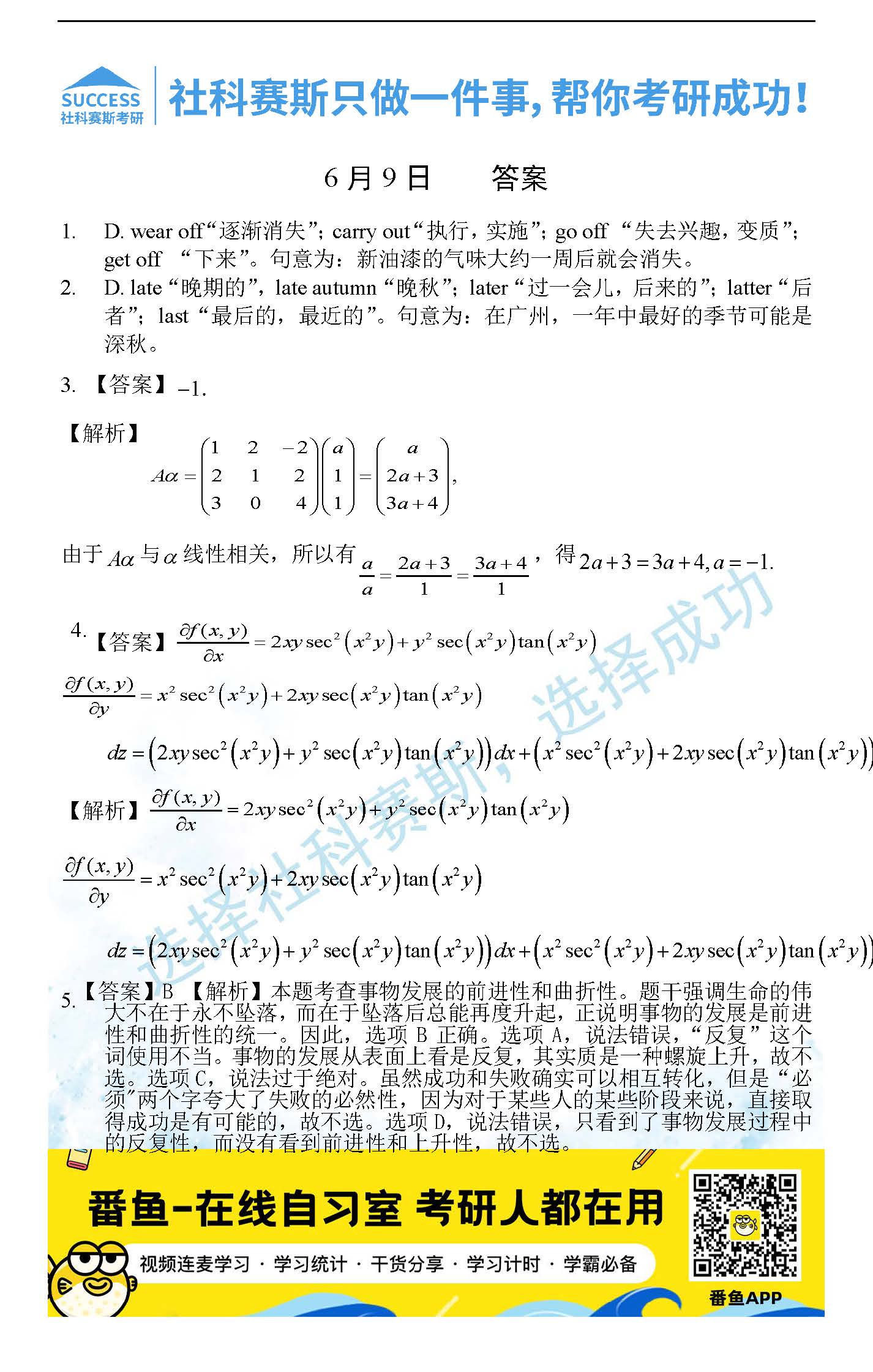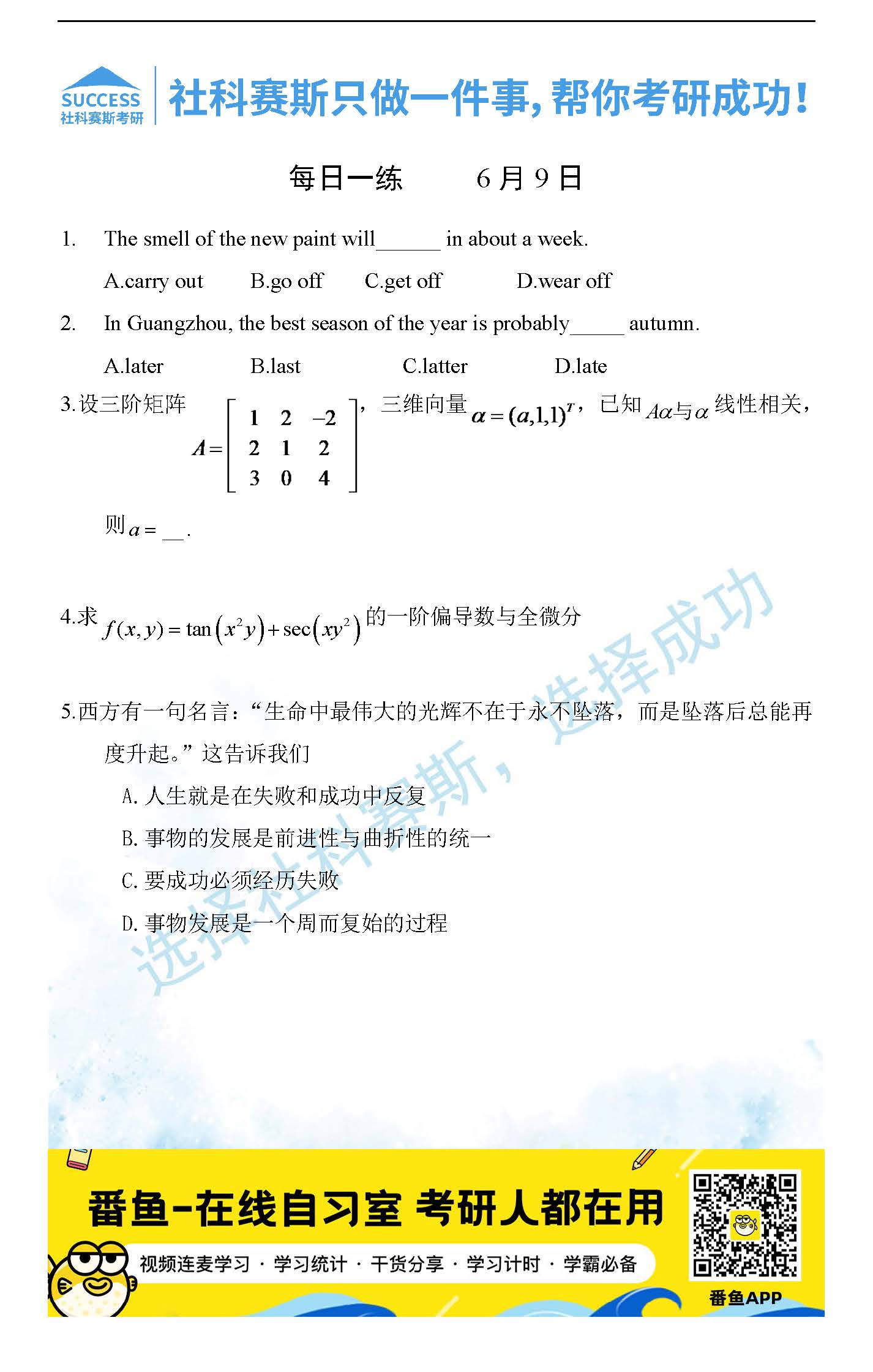 考研是一場持久戰(zhàn),保持良好的學(xué)習(xí)習(xí)慣,是能確保復(fù)習(xí)高效的關(guān)鍵。今天社科賽斯考研網(wǎng)小編整理了“2022考研每日一練:6月9日管理類聯(lián)考每日一練及答案”的內(nèi)容,希望能對廣大考生有所幫助。