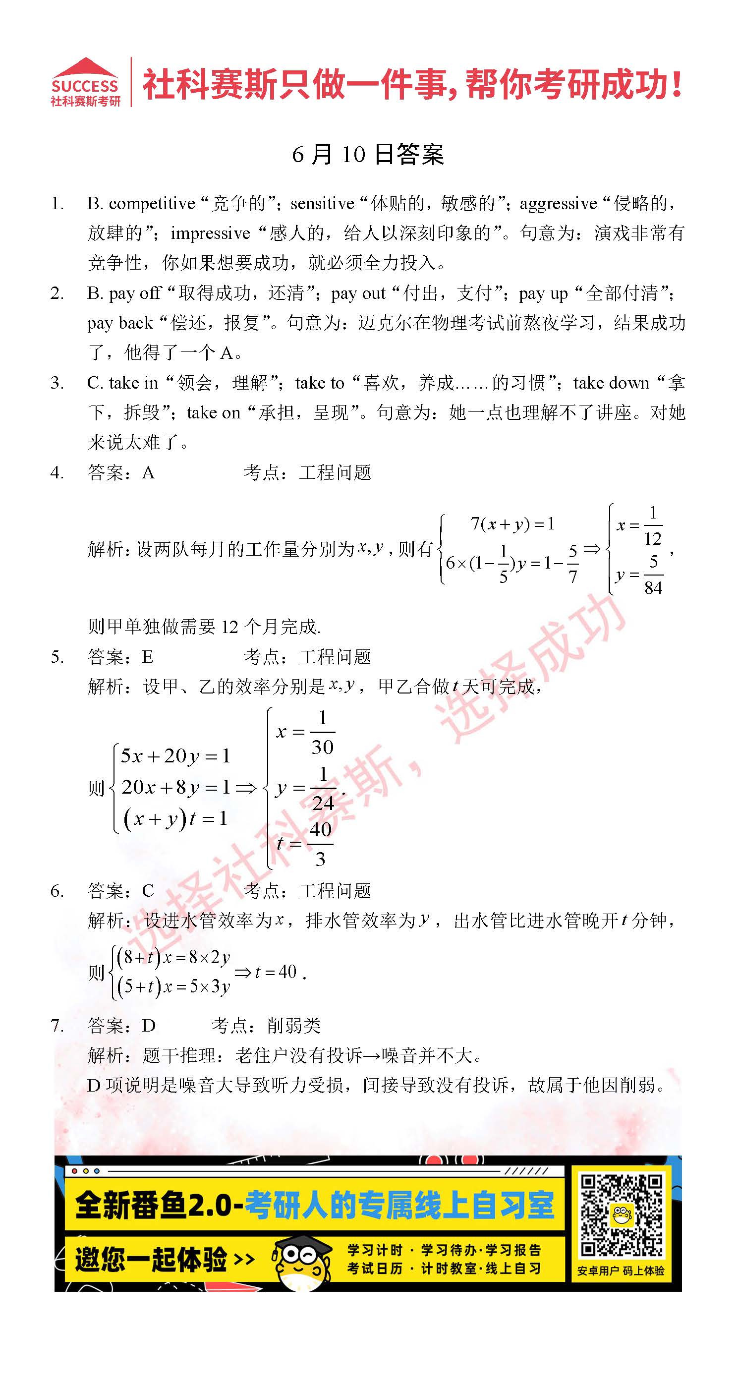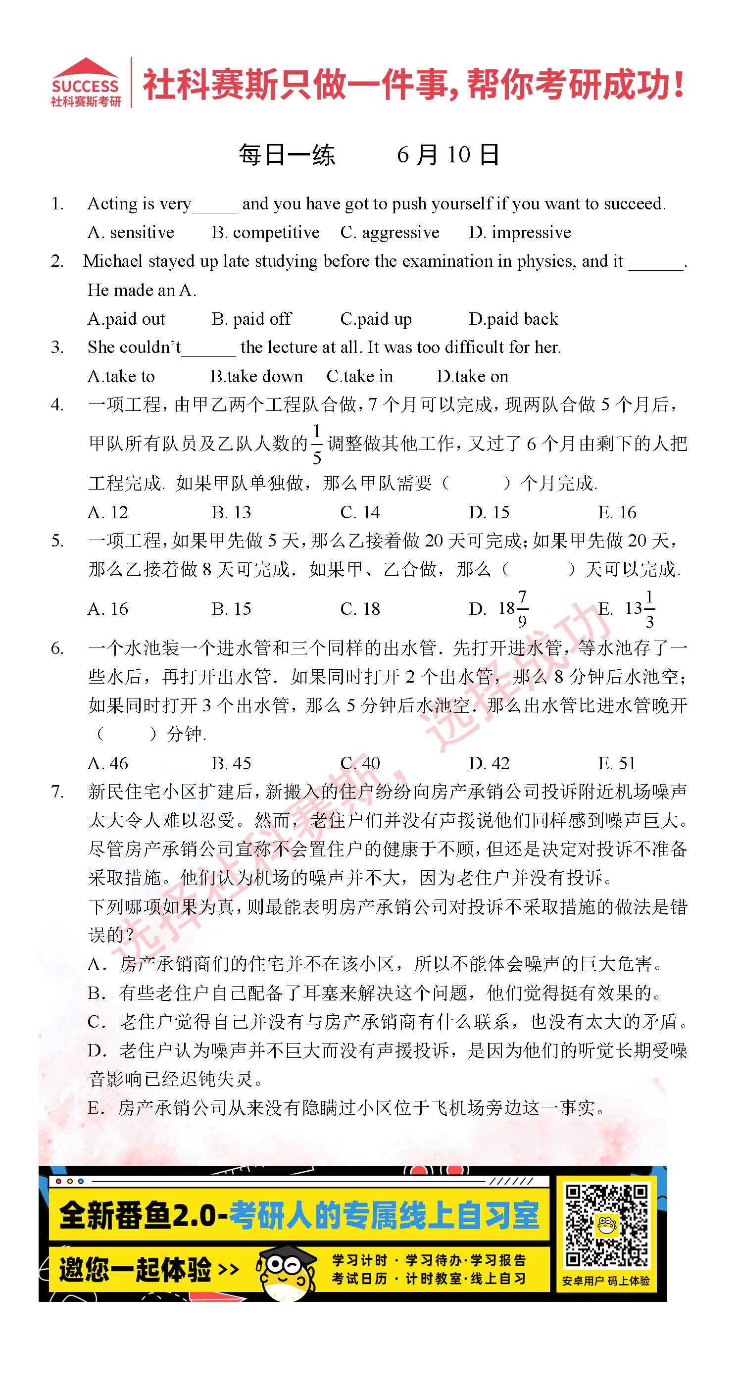 以上就是社科賽斯考研網(wǎng)小編為大家整理2022考研每日一練:6月10日管理類聯(lián)考每日一練及答案的全部內(nèi)容,希望各位考生堅持利用起來,更多每日一練內(nèi)容請持續(xù)關(guān)注社科賽斯考研網(wǎng)。