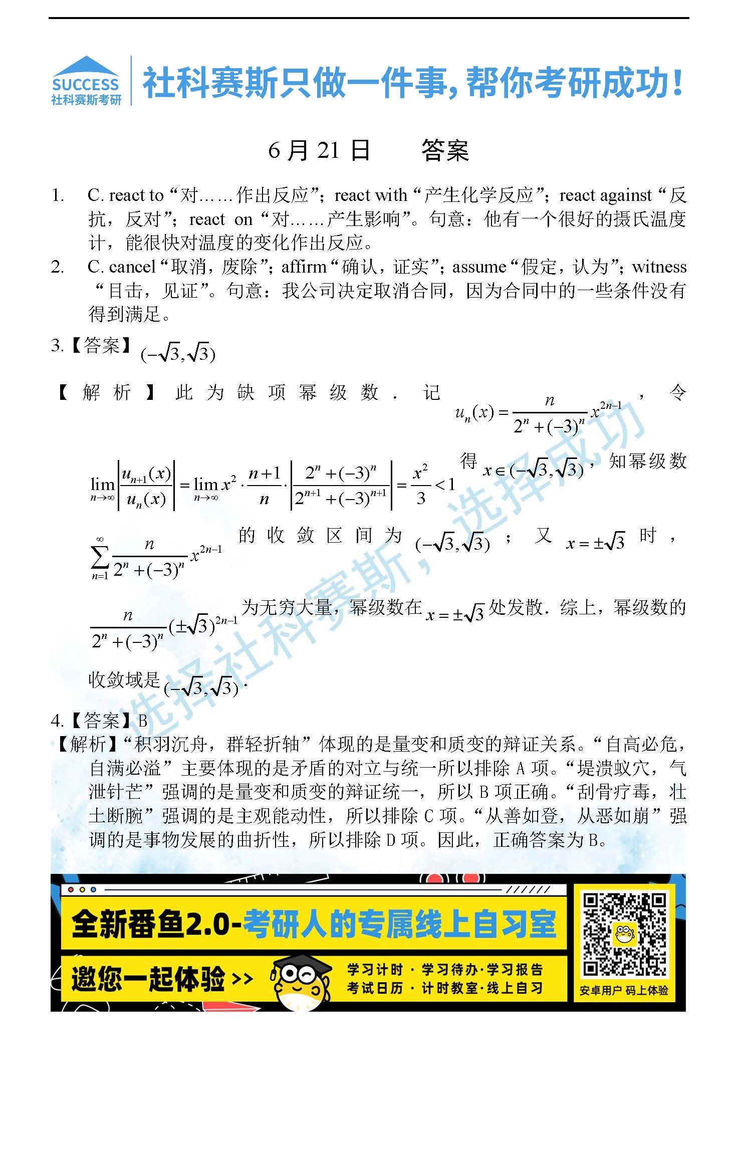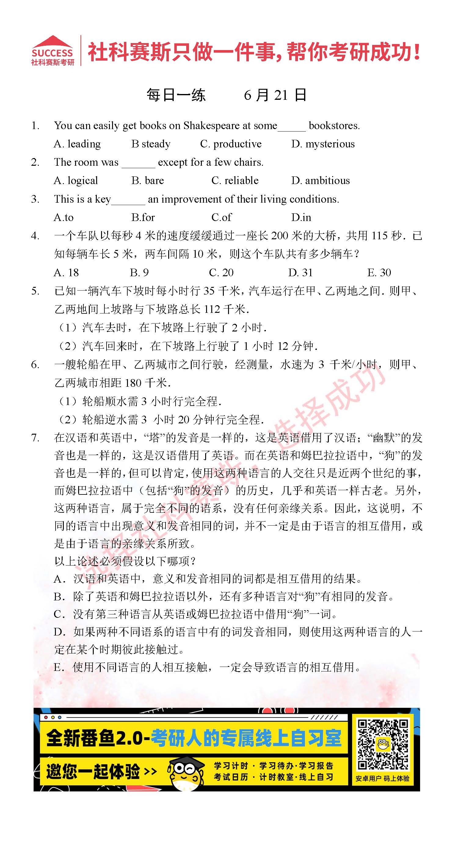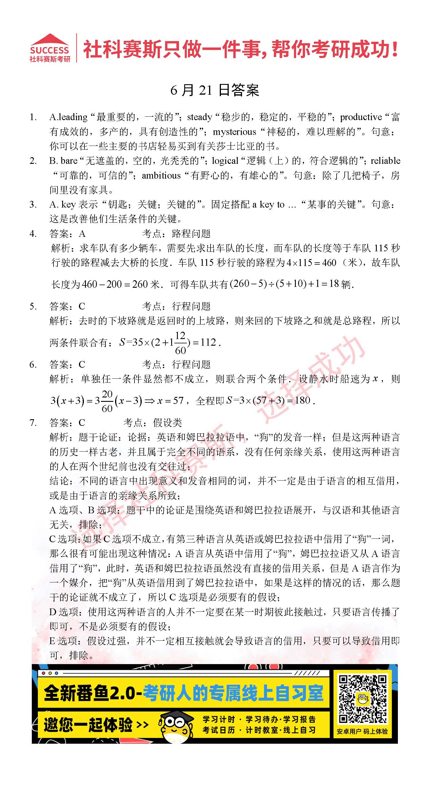 以上就是社科賽斯考研網(wǎng)小編為大家整理2022考研每日一練:6月21日管理類聯(lián)考每日一練及答案的全部?jī)?nèi)容,希望各位考生堅(jiān)持利用起來,更多每日一練內(nèi)容請(qǐng)持續(xù)關(guān)注社科賽斯考研網(wǎng)。