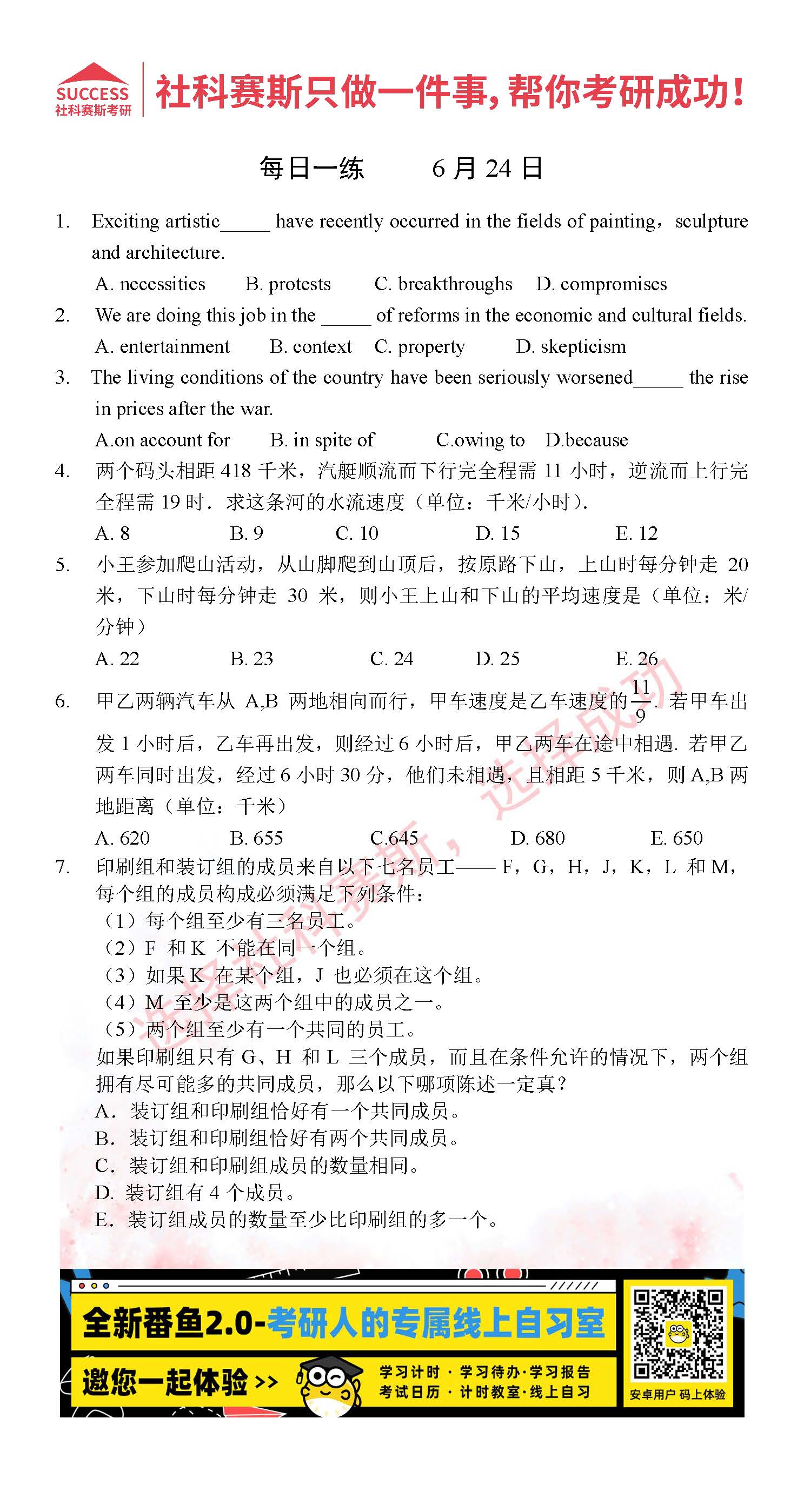 2022考研每日一練:6月24日管理類聯(lián)考每日一練及答案