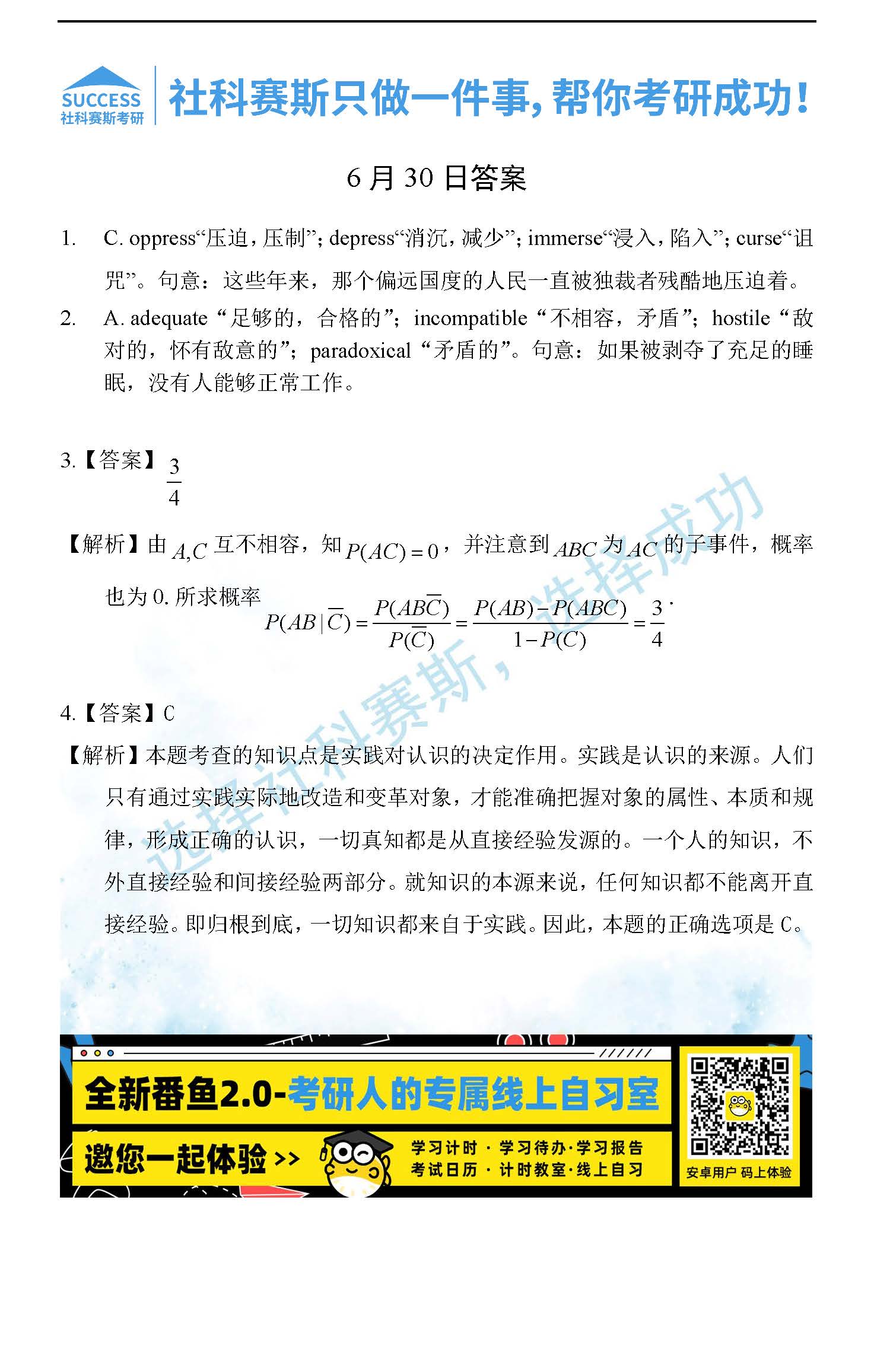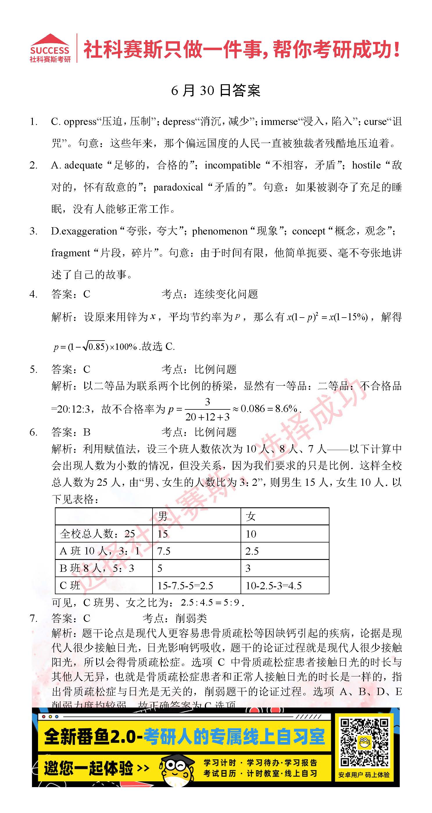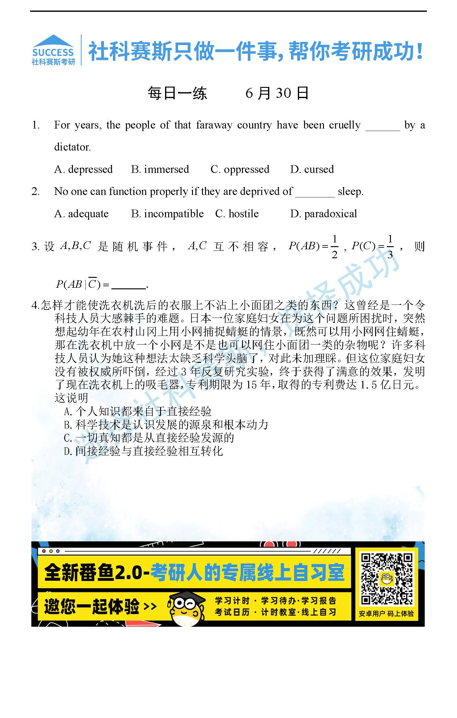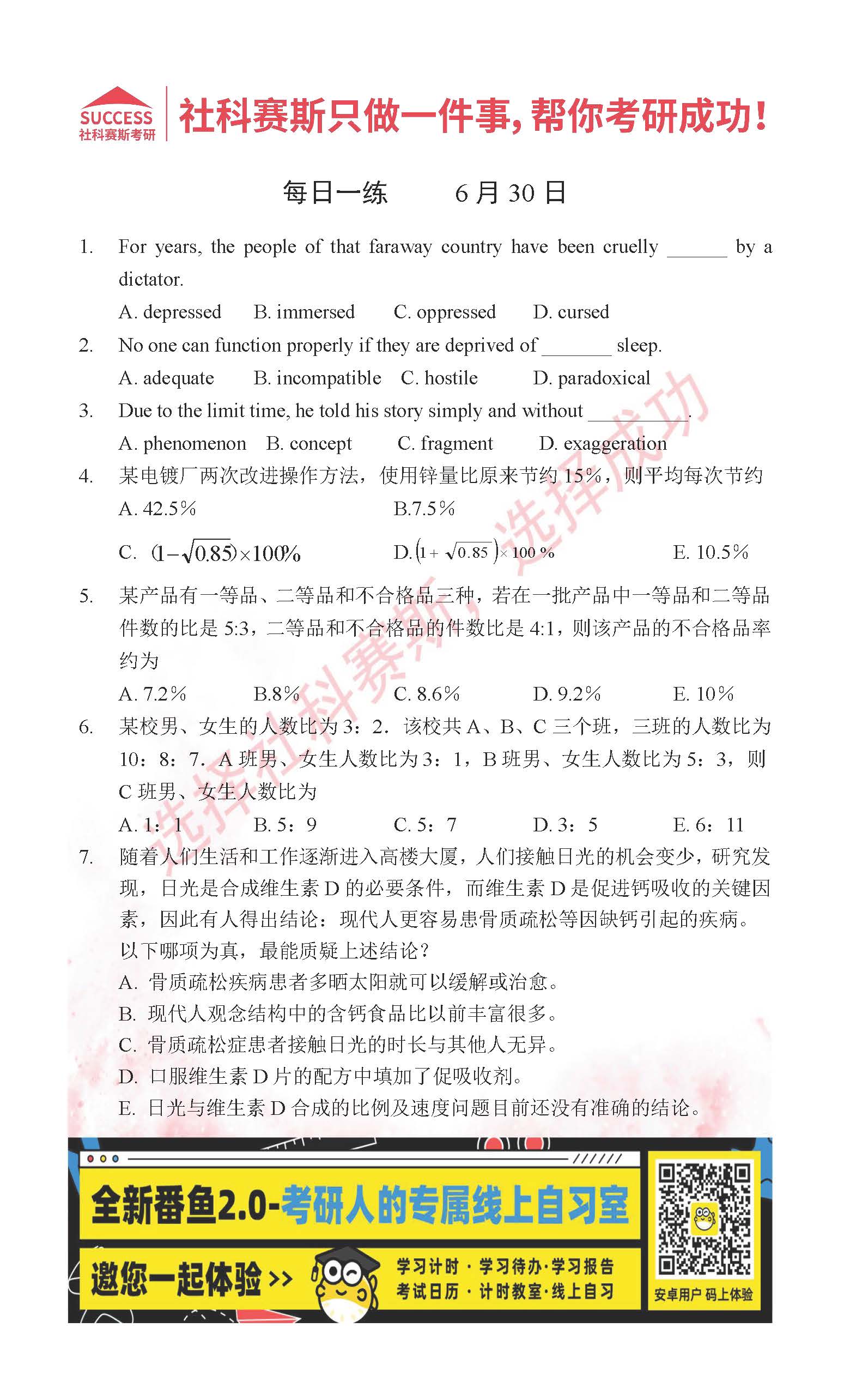 2022考研每日一練:6月30日管理類聯(lián)考每日一練及答案