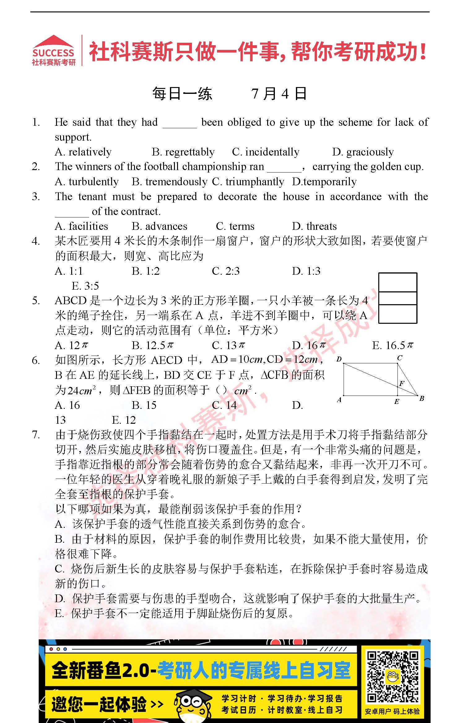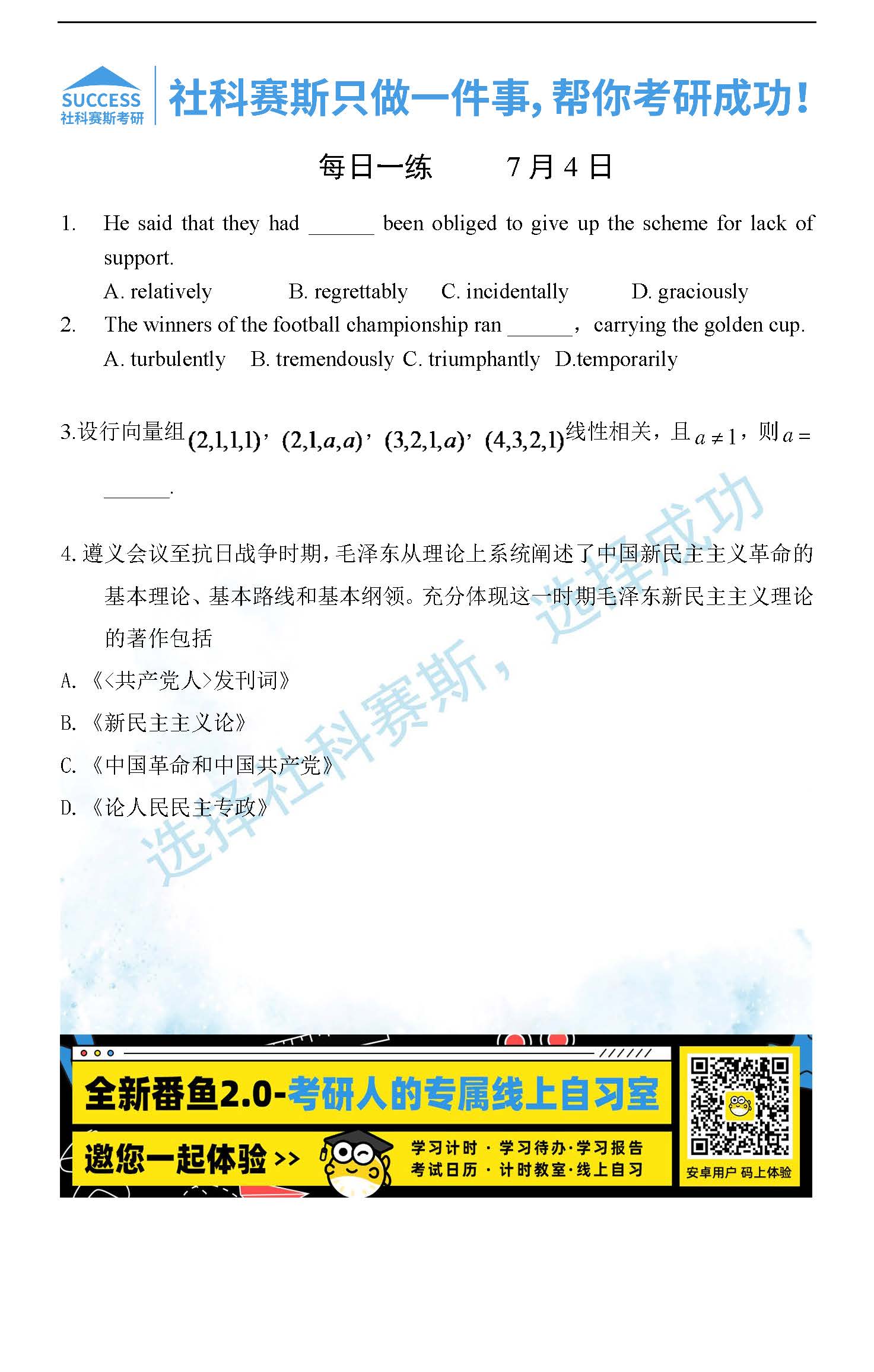 2022考研每日一練:7月4日管理類聯(lián)考每日一練及答案