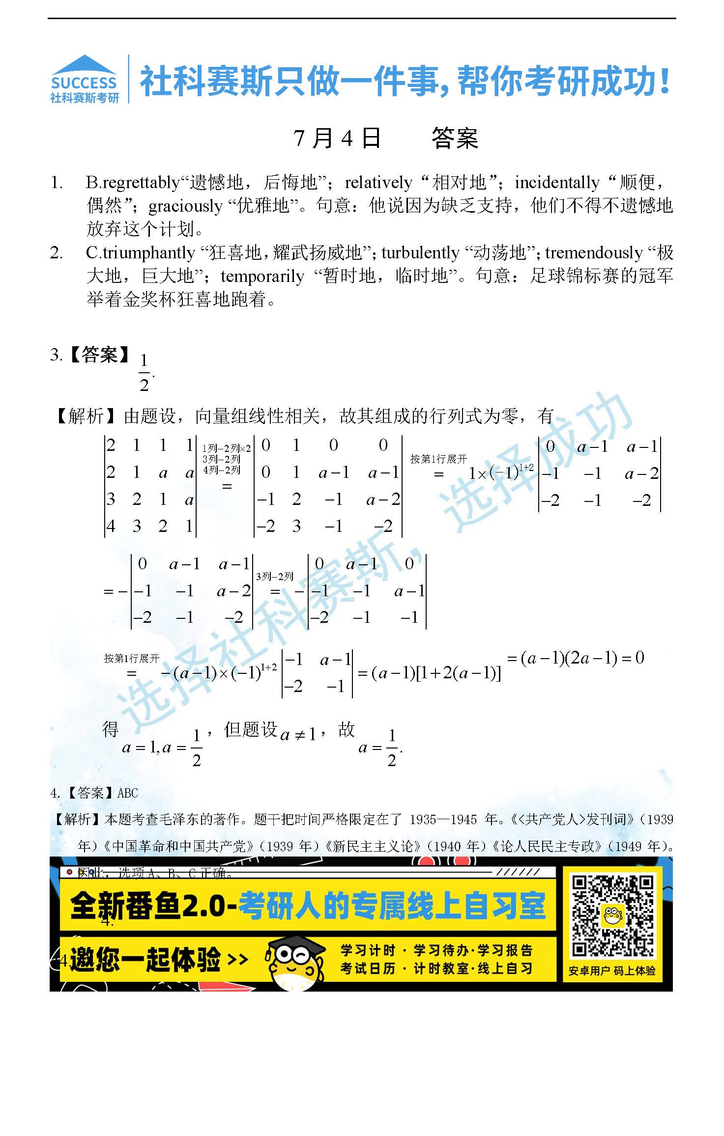 考研是一場持久戰(zhàn),保持良好的學習習慣,是能確保復習高效的關鍵。今天社科賽斯考研網(wǎng)小編整理了“2022考研每日一練:7月4日管理類聯(lián)考每日一練及答案”的內(nèi)容,希望能對廣大考生有所幫助。