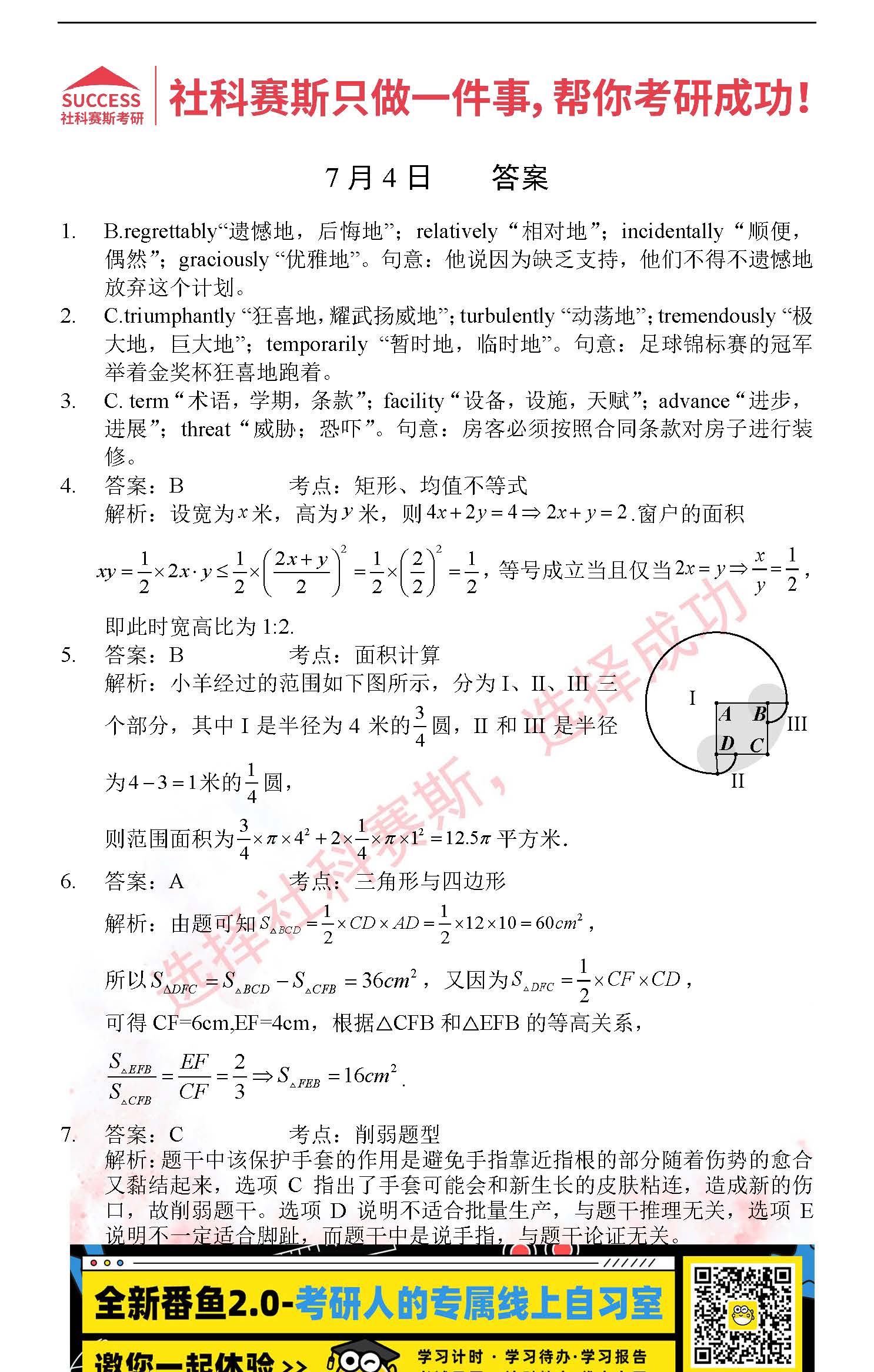 以上就是社科賽斯考研網(wǎng)小編為大家整理2022考研每日一練:7月4日管理類聯(lián)考每日一練及答案的全部內(nèi)容,希望各位考生堅持利用起來,更多每日一練內(nèi)容請持續(xù)關注社科賽斯考研網(wǎng)