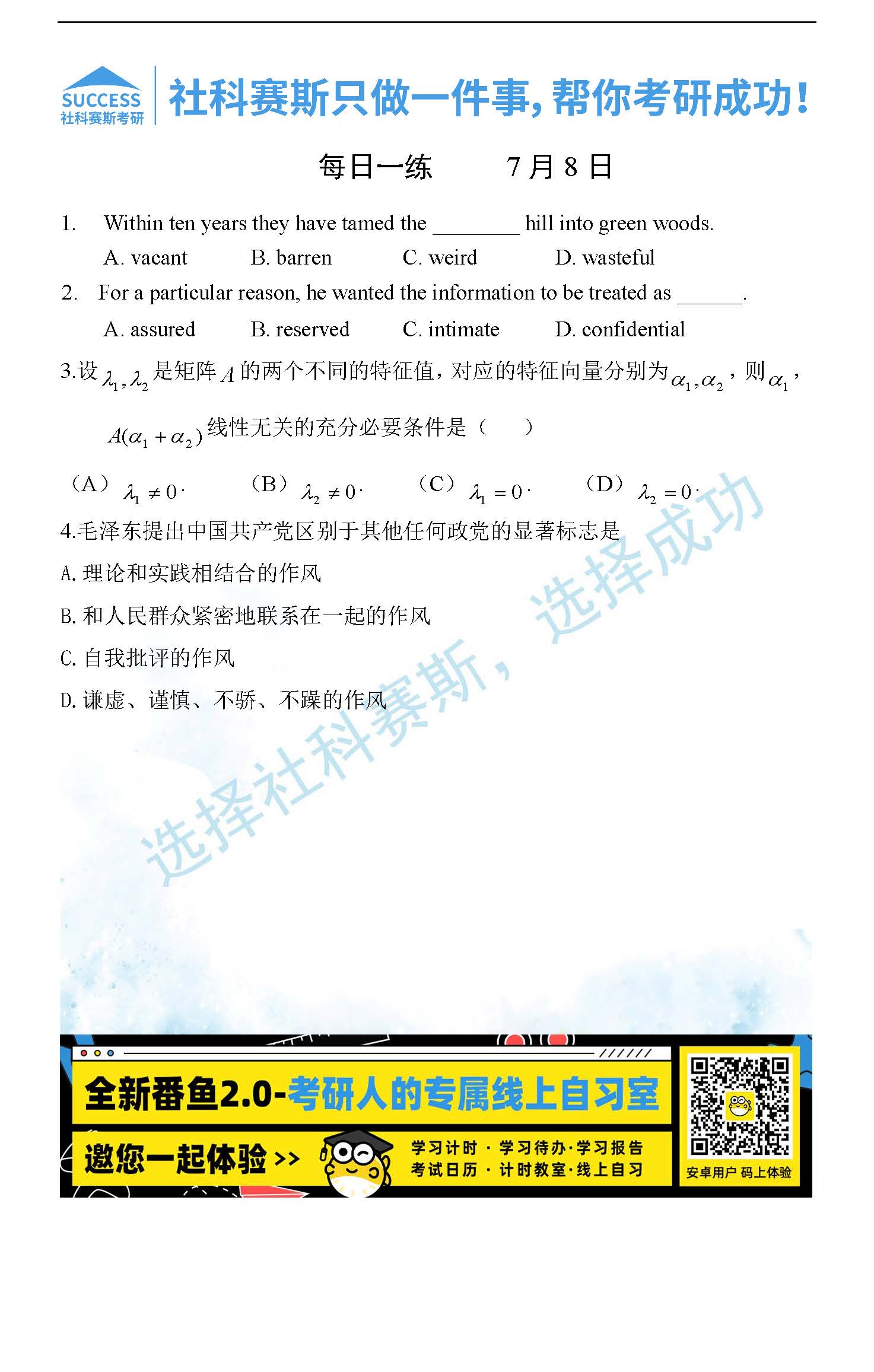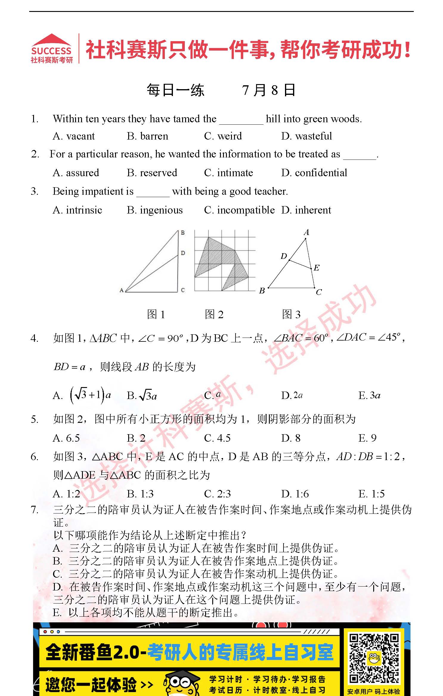 2022考研每日一練:7月8日管理類聯(lián)考每日一練及答案