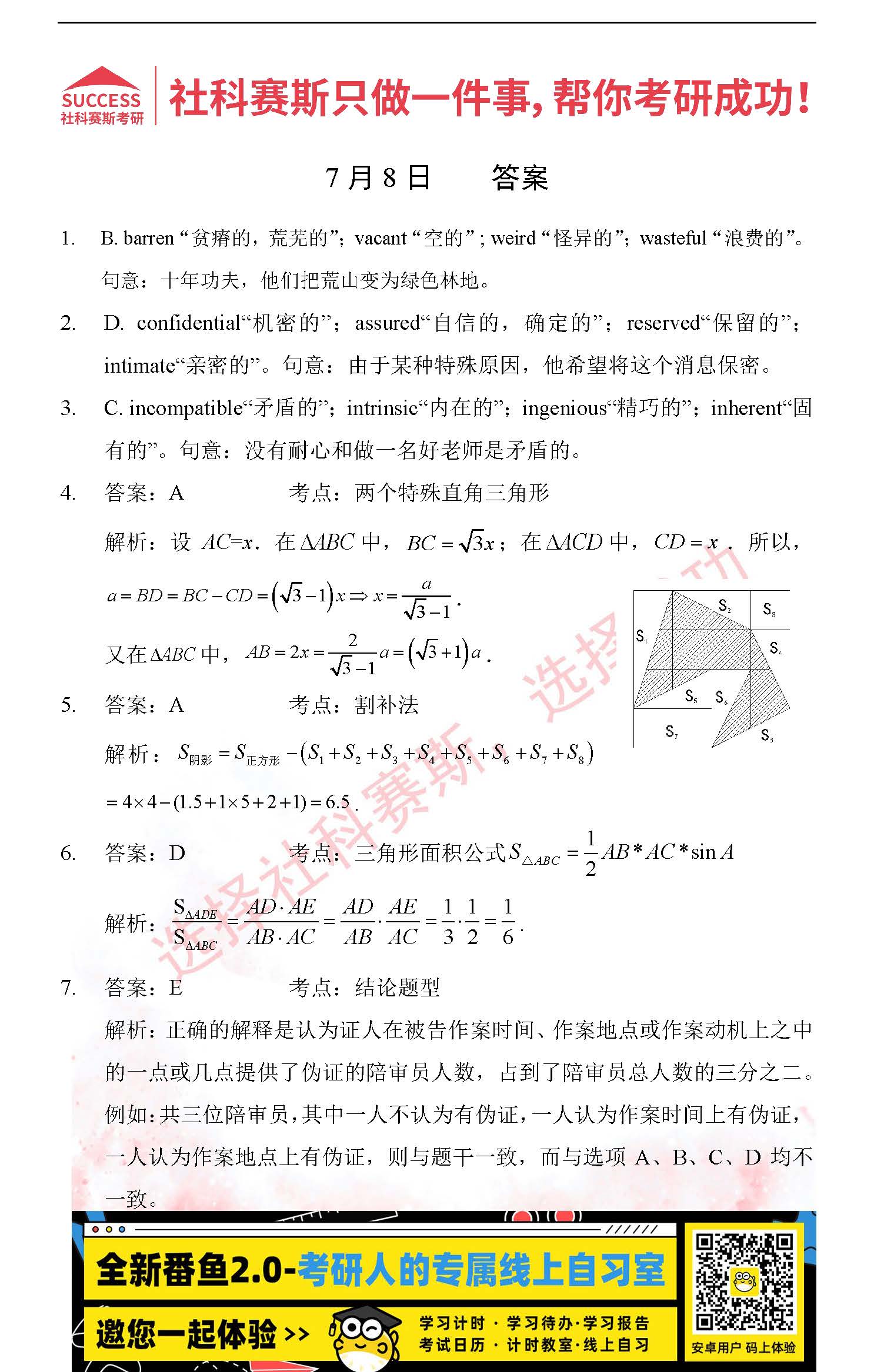 以上就是社科賽斯考研網(wǎng)小編為大家整理2022考研每日一練:7月8日管理類聯(lián)考每日一練及答案的全部內(nèi)容,希望各位考生堅持利用起來,更多每日一練內(nèi)容請持續(xù)關(guān)注社科賽斯考研網(wǎng)。