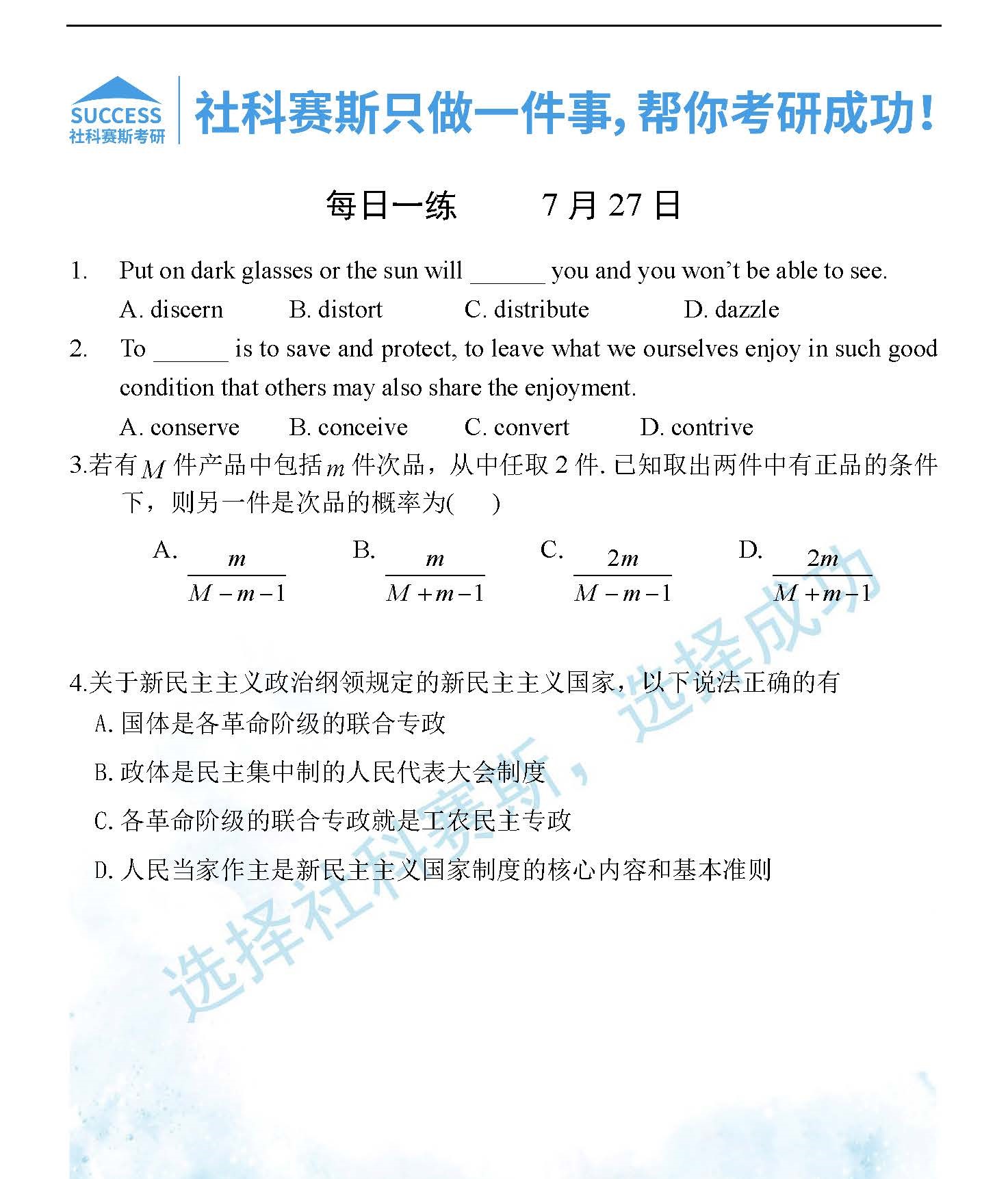 2022考研每日一練:7月27日管理類聯(lián)考每日一練及答案