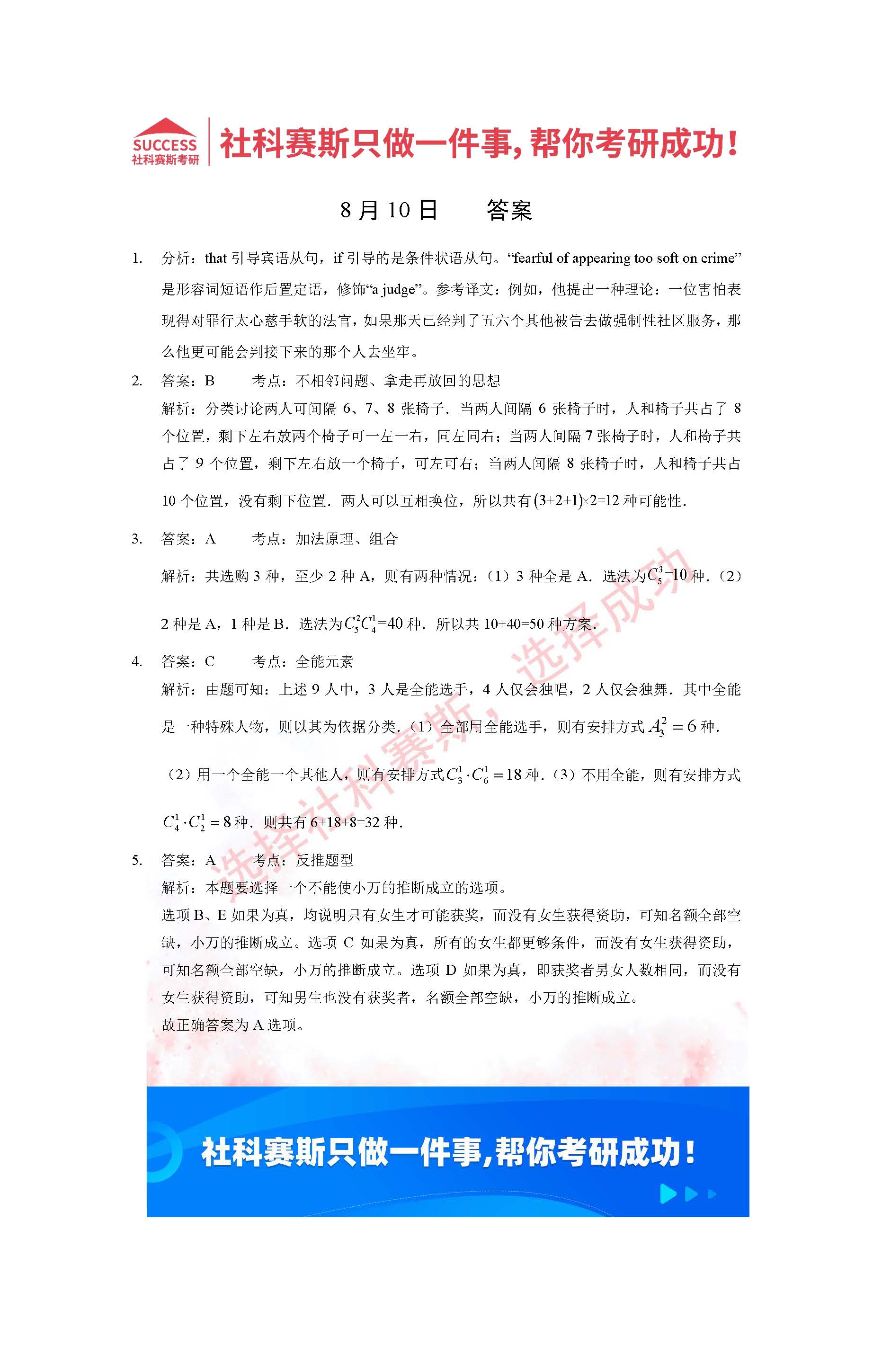 以上就是社科賽斯考研網(wǎng)小編為大家整理2022考研每日一練:8月10日管理類聯(lián)考每日一練及答案的全部內(nèi)容,希望各位考生堅(jiān)持利用起來,更多每日一練內(nèi)容請持續(xù)關(guān)注社科賽斯考研網(wǎng)