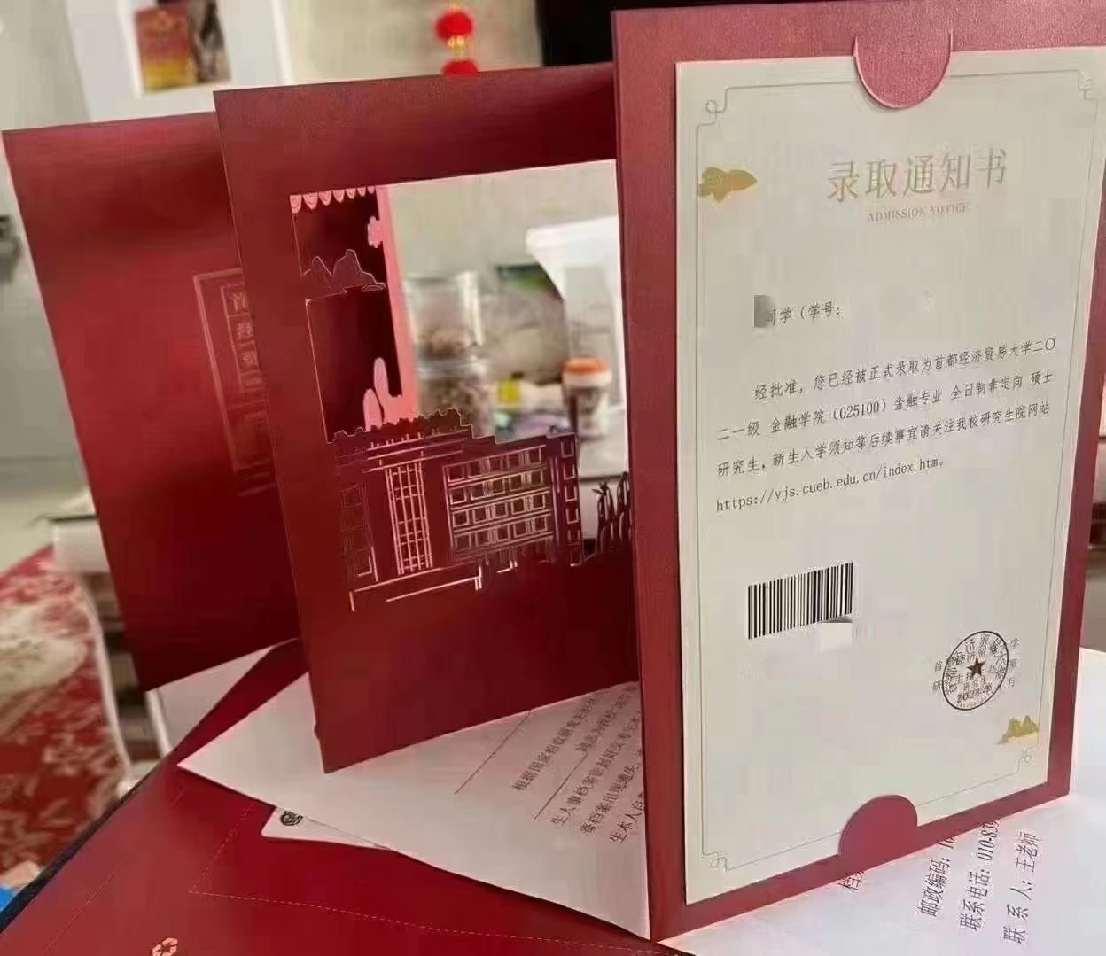 首都經(jīng)濟(jì)貿(mào)易大學(xué)碩士研究生錄取通知書