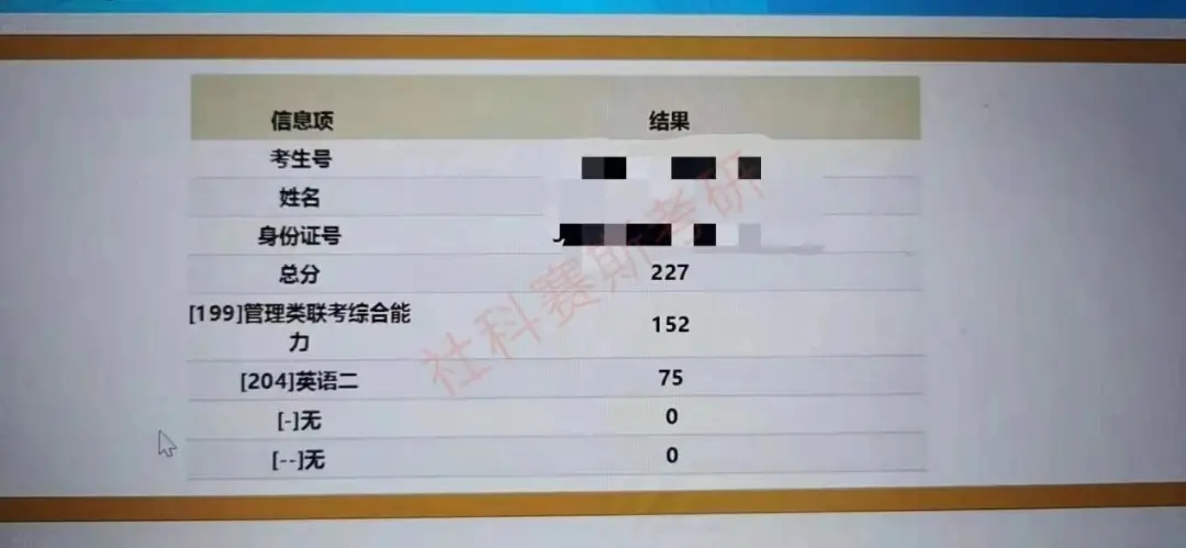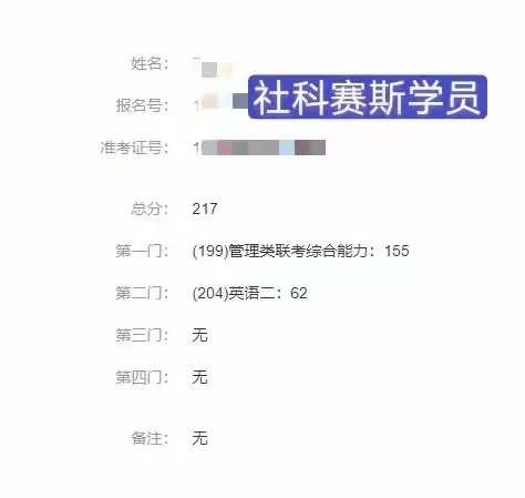 成績查詢結(jié)果,從圖可見,他們的成績很優(yōu)秀,每一個分數(shù)背后,都有社科賽斯人的努力與付出,但更多的,是學員對考研的堅持,對自己改變命運信念的堅定!