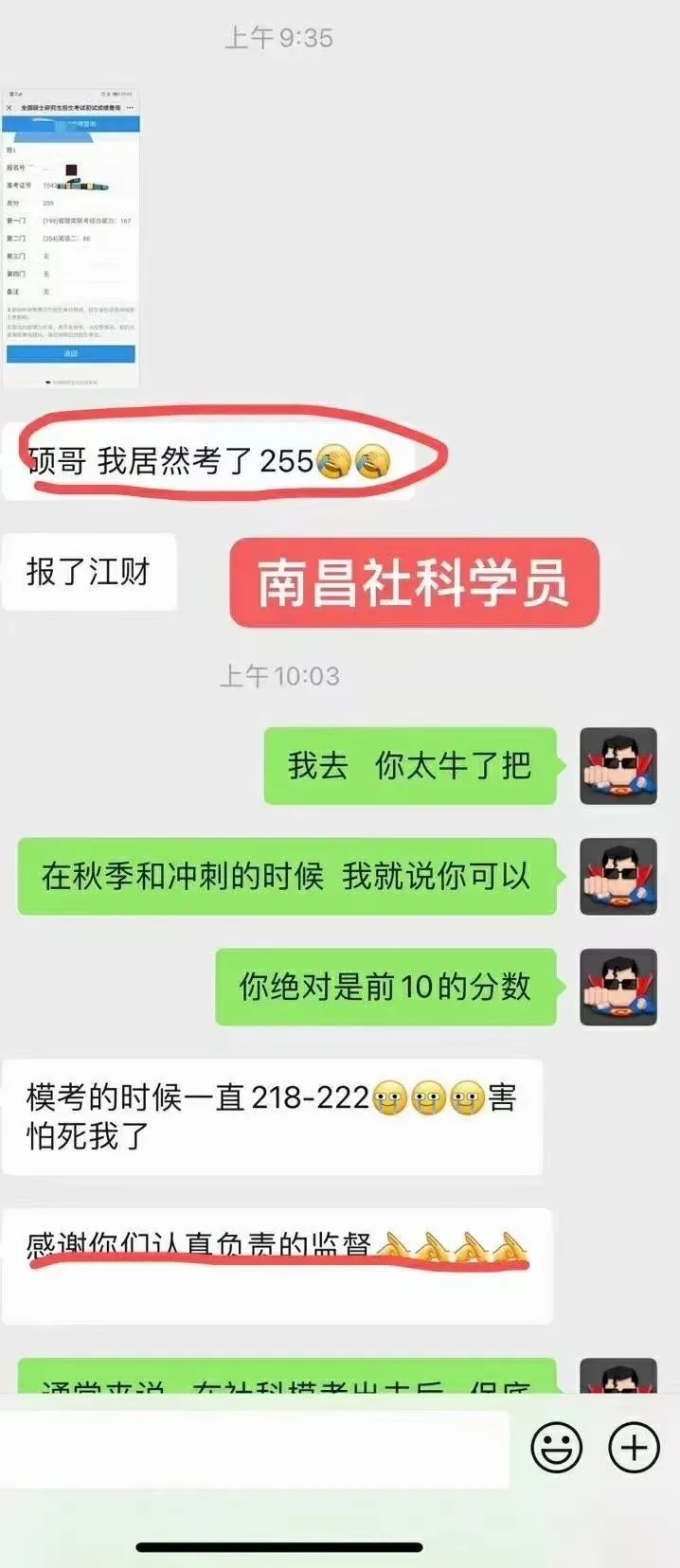 目前,社科賽斯的老師們已經(jīng)收到了來自學員的第一波喜訊,既有學碩高分,也有專碩高分,更多的是,學員言語之間,掩飾不住的喜悅與感激。