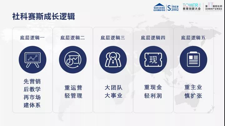 第三個底層邏輯叫做“大團(tuán)隊(duì)、大事業(yè)”。大家都是做教育培訓(xùn)或者教育培訓(xùn)相關(guān)的,但是現(xiàn)在只有極少數(shù)的公司能夠?qū)崿F(xiàn)指數(shù)級的增長;而我們這類教育不管是線上教育還是線下教育,都需要人力,尤其是現(xiàn)在這樣傳統(tǒng)的、做線下的公司,一定要重視人員規(guī)模的。我們的經(jīng)驗(yàn)表明,員工隊(duì)伍有多大,你就能夠做多大。