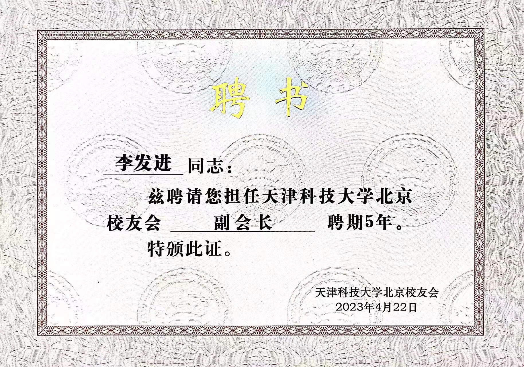 社科賽斯考研總裁兼黨支部書記李發(fā)進(jìn)受聘為為天津科技大學(xué)北京校友會(huì)副會(huì)長(zhǎng)一職,聘期五年。