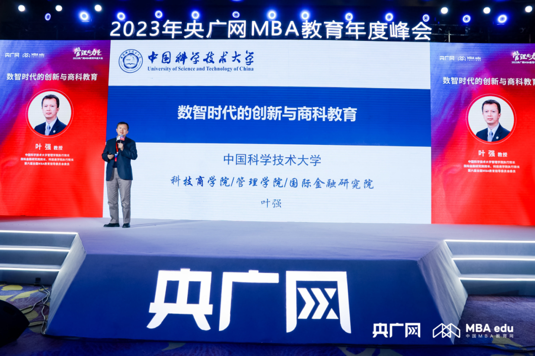 中國科學(xué)技術(shù)大學(xué)管理學(xué)院執(zhí)行院長、國際金融研究院院長、科技商學(xué)院執(zhí)行院長、第六屆全國MBA教育指導(dǎo)委員會委員葉強(qiáng)圍繞“數(shù)智時代的創(chuàng)新與商科教育”主題進(jìn)行分享。他指出,第四次產(chǎn)業(yè)革命將會是數(shù)字化革命,物理世界將與數(shù)字世界融合,數(shù)據(jù)將成為重要的生產(chǎn)要素之一,但是技術(shù)無法代替正確的管理方法和思維方式,商科教育的重要性不言而喻。葉院長表示,新時代的商科教育要打造懂科技、懂產(chǎn)業(yè)、懂市場、懂資本、懂管理的復(fù)合型科技產(chǎn)業(yè)組織人才,為建設(shè)中國特色、世界一流科技商學(xué)院而奮斗。
