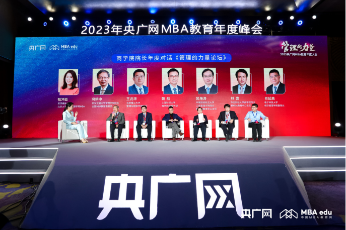 胸懷“國之大者”,共創(chuàng)商科高地。2023年12月2日,由央廣網(wǎng)主辦,中國MBA教育網(wǎng)承辦的“2023央廣網(wǎng)MBA教育年度大會暨管理的力量論壇”在京隆重舉辦。本次大會包含主旨演講、商學(xué)院院長年度對話、MBA中心主任年度對話、2023年度商科教育致敬榜單發(fā)布環(huán)節(jié)。浙江工商大學(xué)校長、國家杰出青年基金獲得者、教育部長江學(xué)者特聘教授、國務(wù)院學(xué)位委員會工商管理學(xué)科評議組成員、教育部高等學(xué)校工商管理類專業(yè)教學(xué)指導(dǎo)委員會委員王永貴教授,中國科學(xué)技術(shù)大學(xué)管理學(xué)院執(zhí)行院長,國際金融研究院院長、科技商學(xué)院執(zhí)行院長,全國MBA教育指導(dǎo)委員會委員葉強(qiáng)教授,南開大學(xué)商學(xué)院院長,國務(wù)院學(xué)位委員會工商管理學(xué)科評議組成員白長虹教授,西安交通大學(xué)管理學(xué)院院長、全國MBA教育指導(dǎo)委員會委員馮耕中教授等商科教育領(lǐng)軍人物、院校代表、校友代表等共襄盛會,圍繞“管理的力量”主題,以多元視角和前瞻視野對中國商科教育進(jìn)行深度觀察,為推動新時代下商科教育發(fā)展注入新理念、新動力、新勢能。