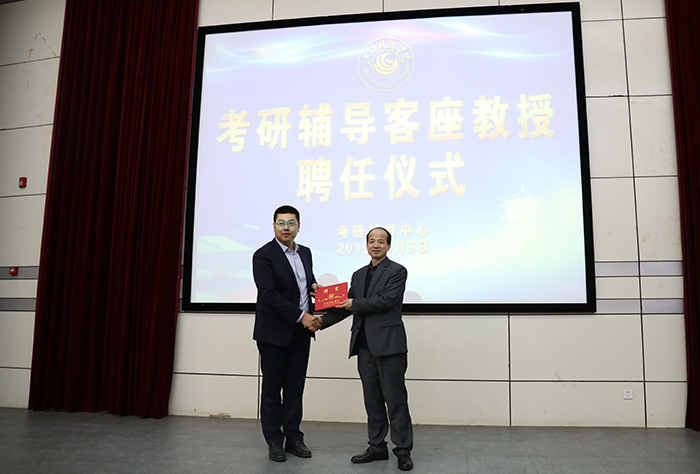【江科網(wǎng)訊(通訊員 余美劍)】3月5日下午,我校在學(xué)術(shù)報(bào)告B廳舉行考研輔導(dǎo)客座教授聘任儀式。教務(wù)處處長馬紅坤出席并向全國考研輔導(dǎo)專家郭炎宏頒發(fā)客座教授證書。財(cái)經(jīng)學(xué)院教學(xué)副院長陽正發(fā)率學(xué)院400多名有意向考研的學(xué)生參加聘任儀式。儀式由考研輔導(dǎo)中心主任余美劍主持。