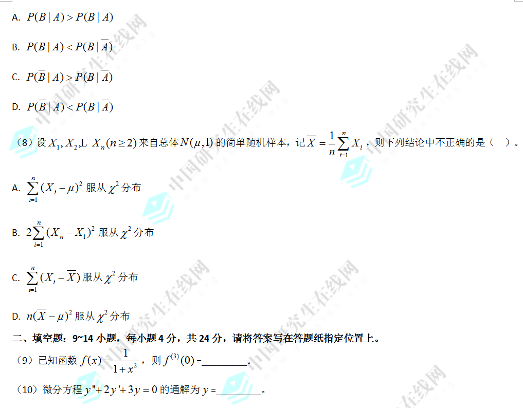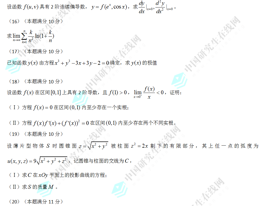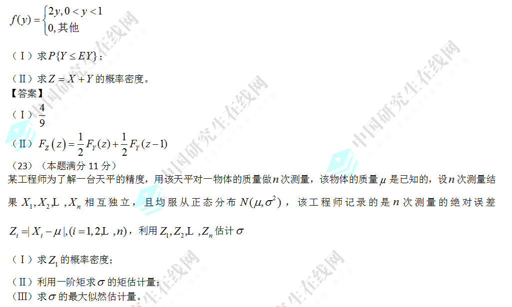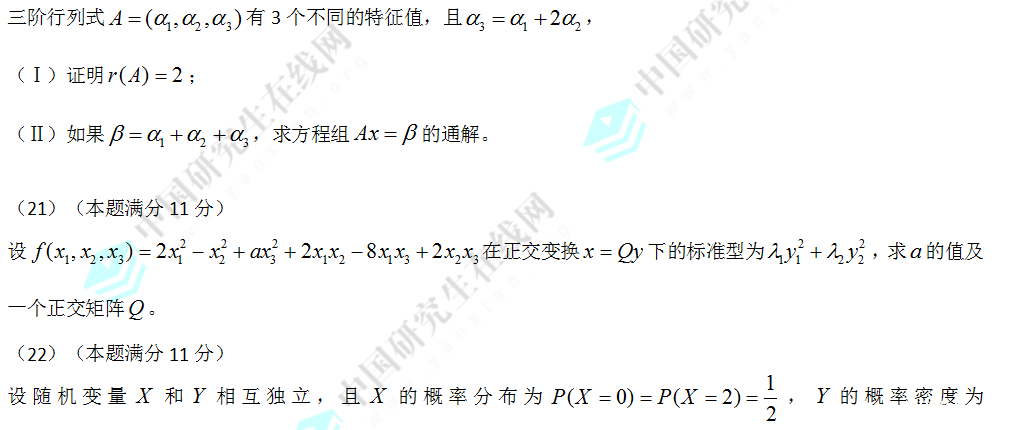 2017年全國碩士研究生入學(xué)統(tǒng)一考試數(shù)學(xué)(一)真題