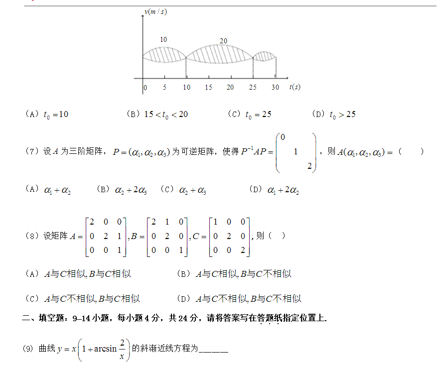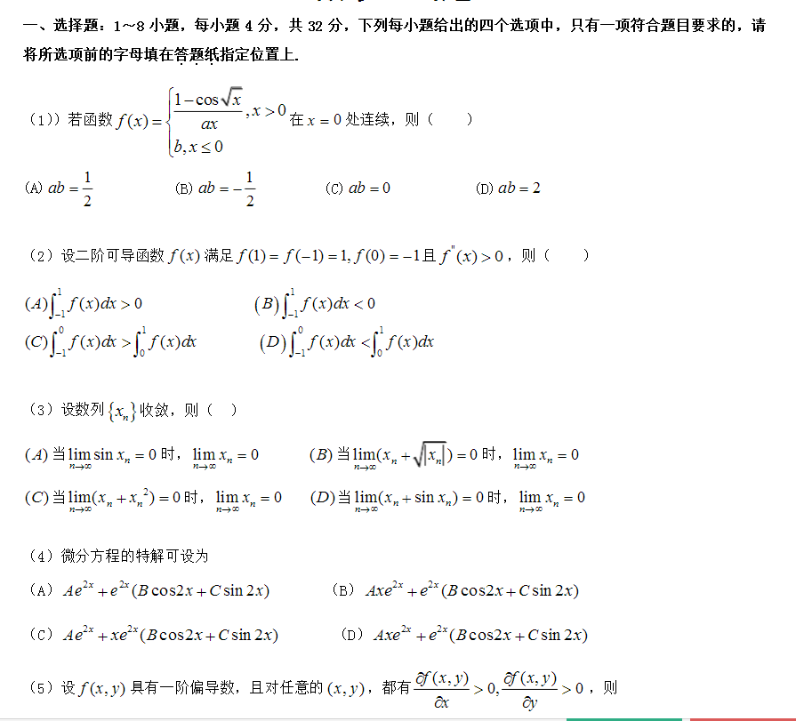 2017年全國(guó)碩士研究生入學(xué)統(tǒng)一考試數(shù)學(xué)(二)真題
