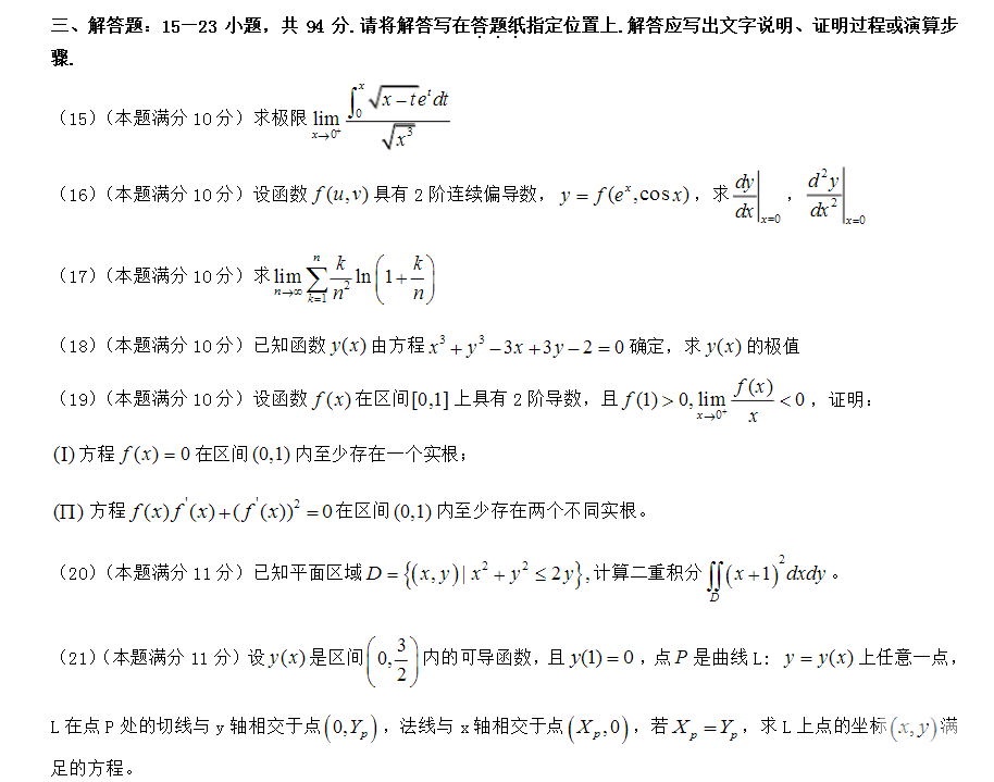 當(dāng)前位置: 考研數(shù)學(xué) > 數(shù)學(xué)真題 > 2017年全國(guó)碩士研究生入學(xué)統(tǒng)一考試數(shù)學(xué)(二)真題