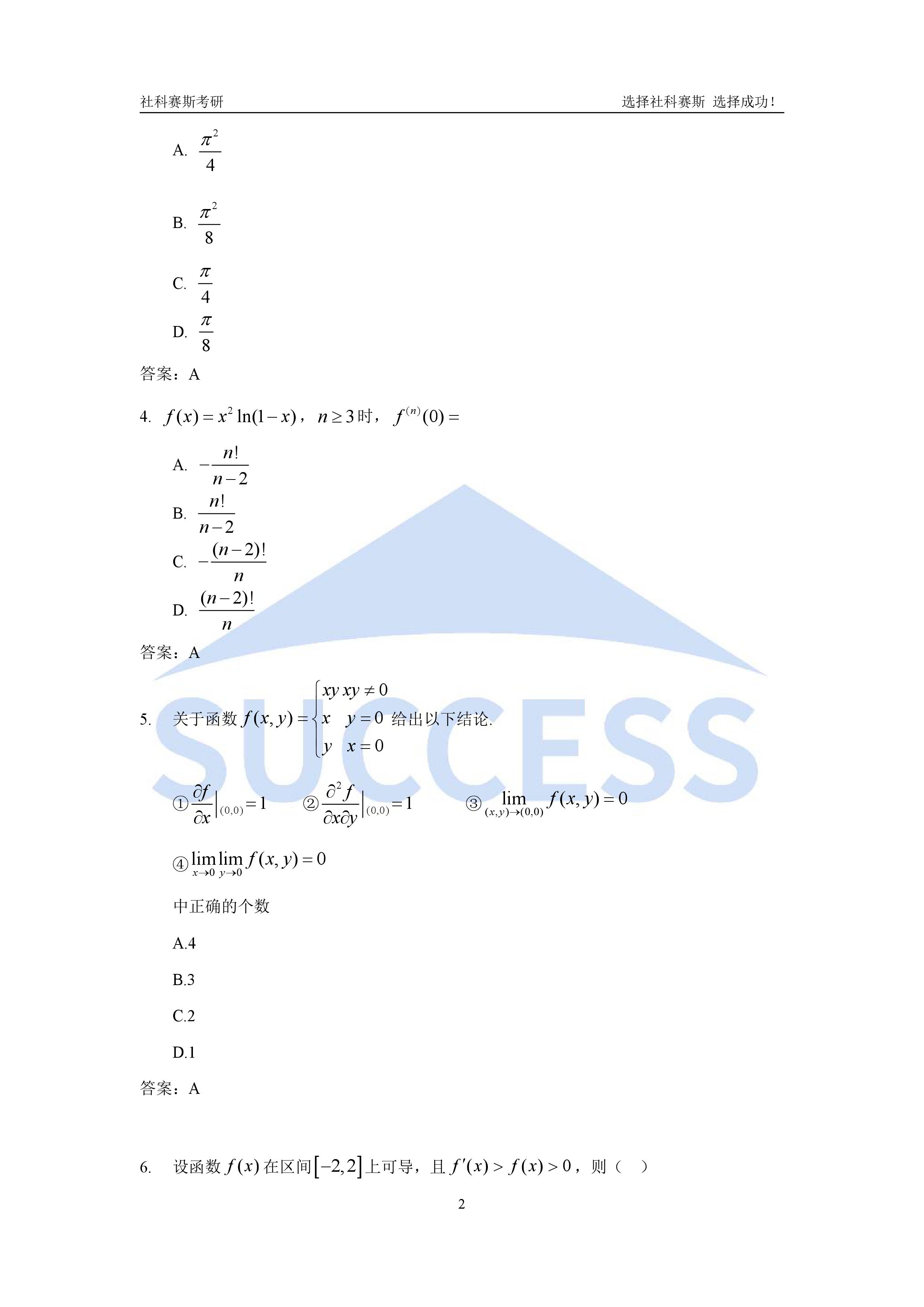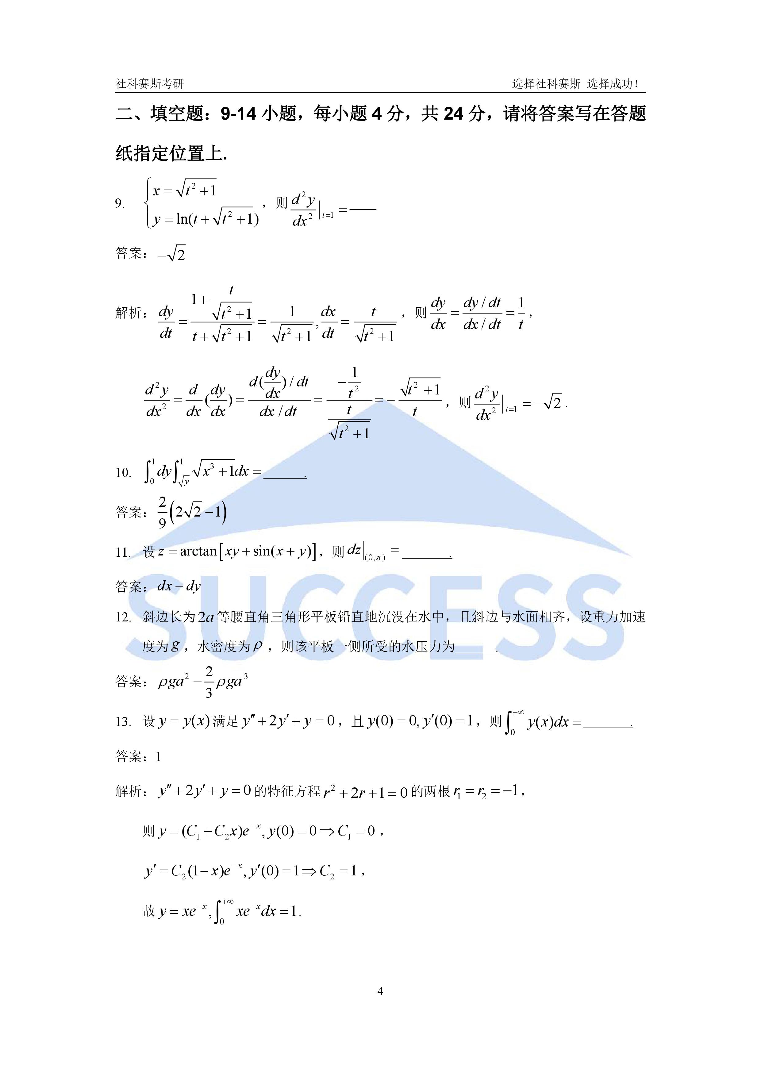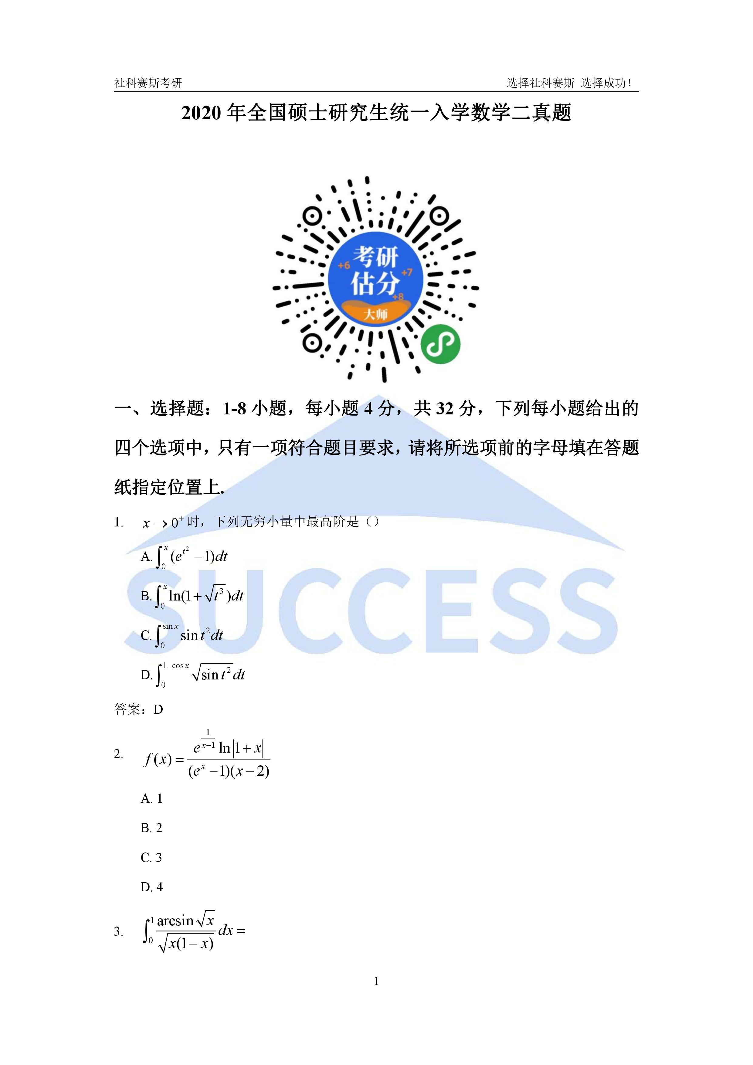 2020年全國(guó)碩士研究生考試考研數(shù)學(xué)(二)真題及解析