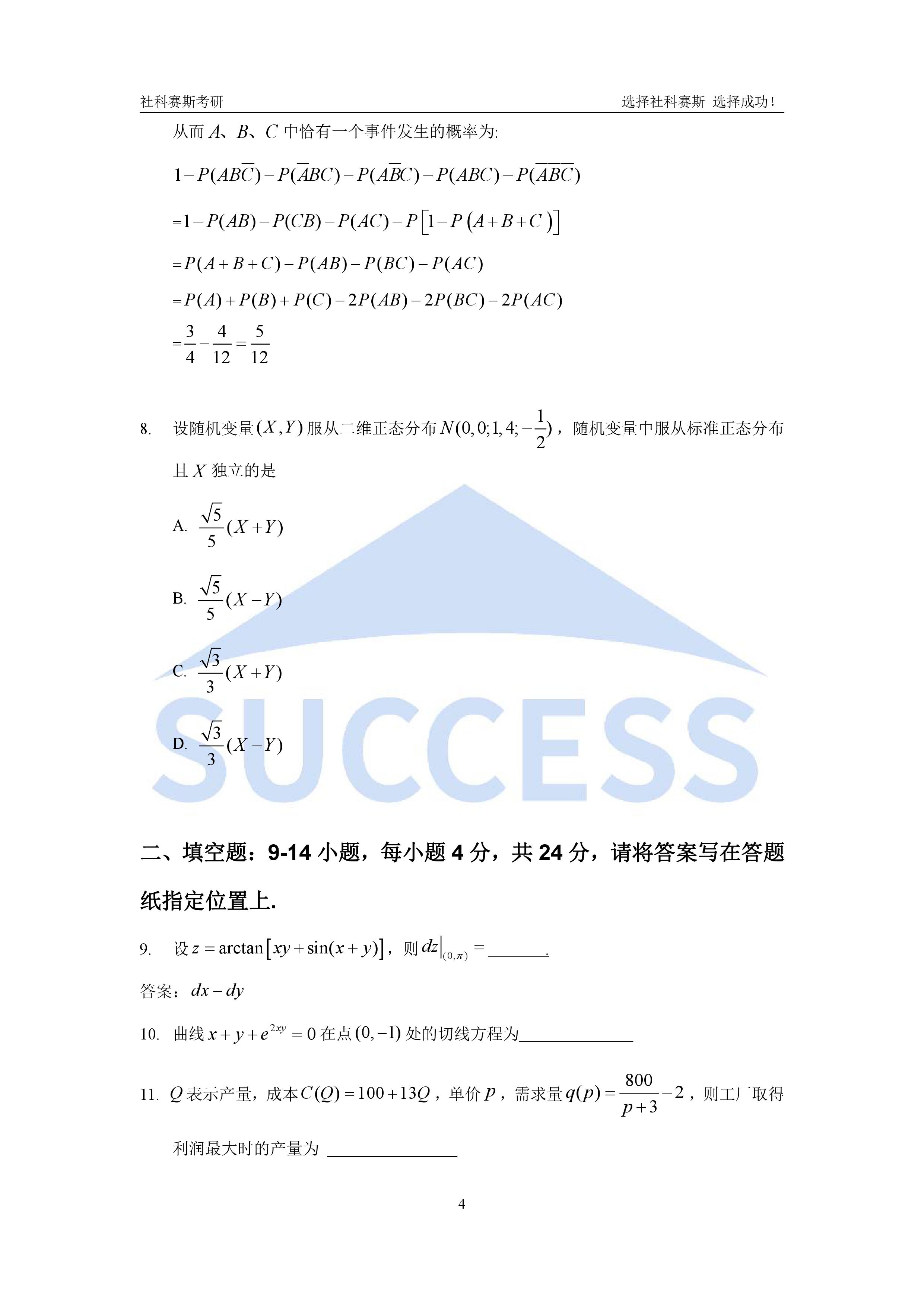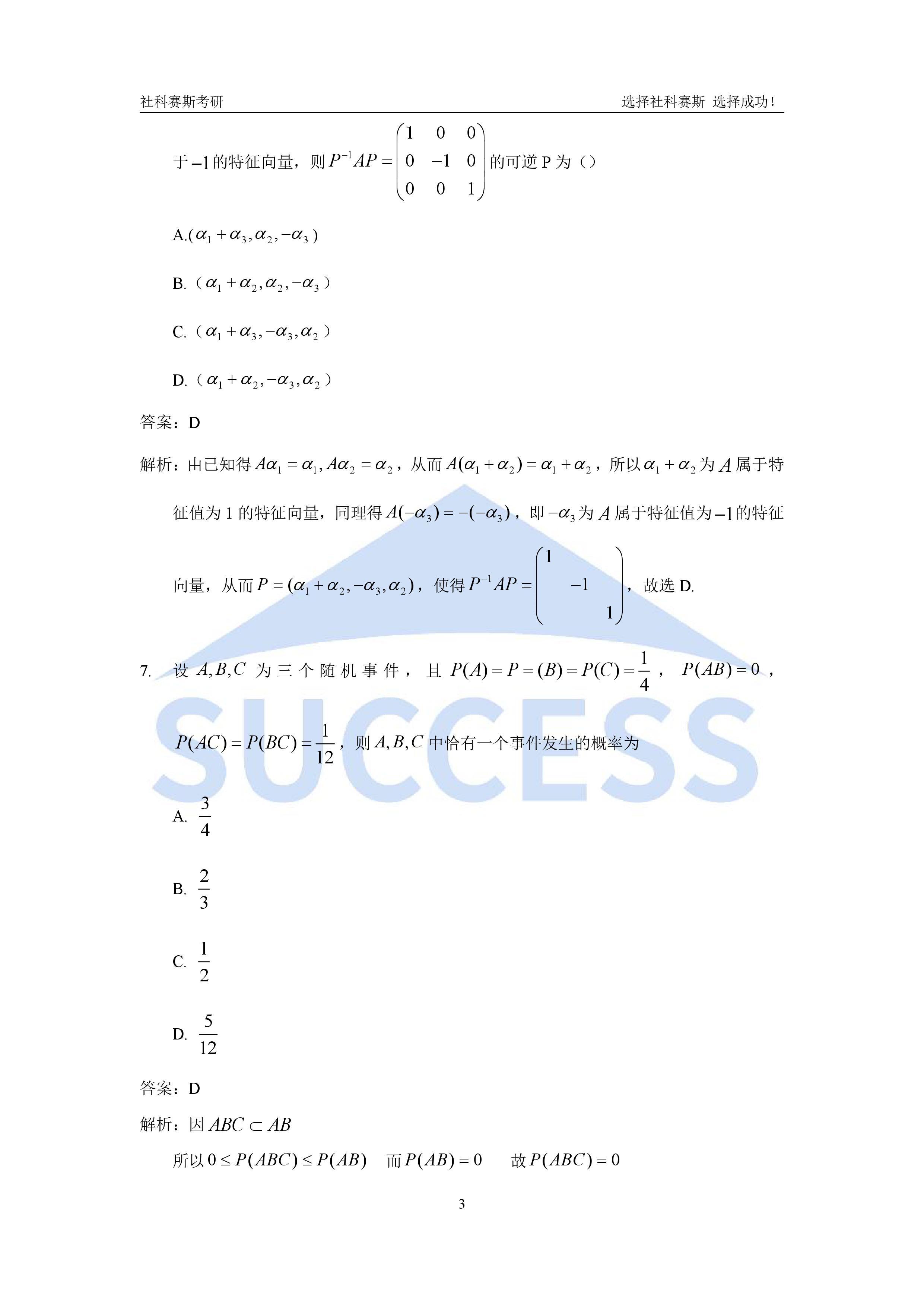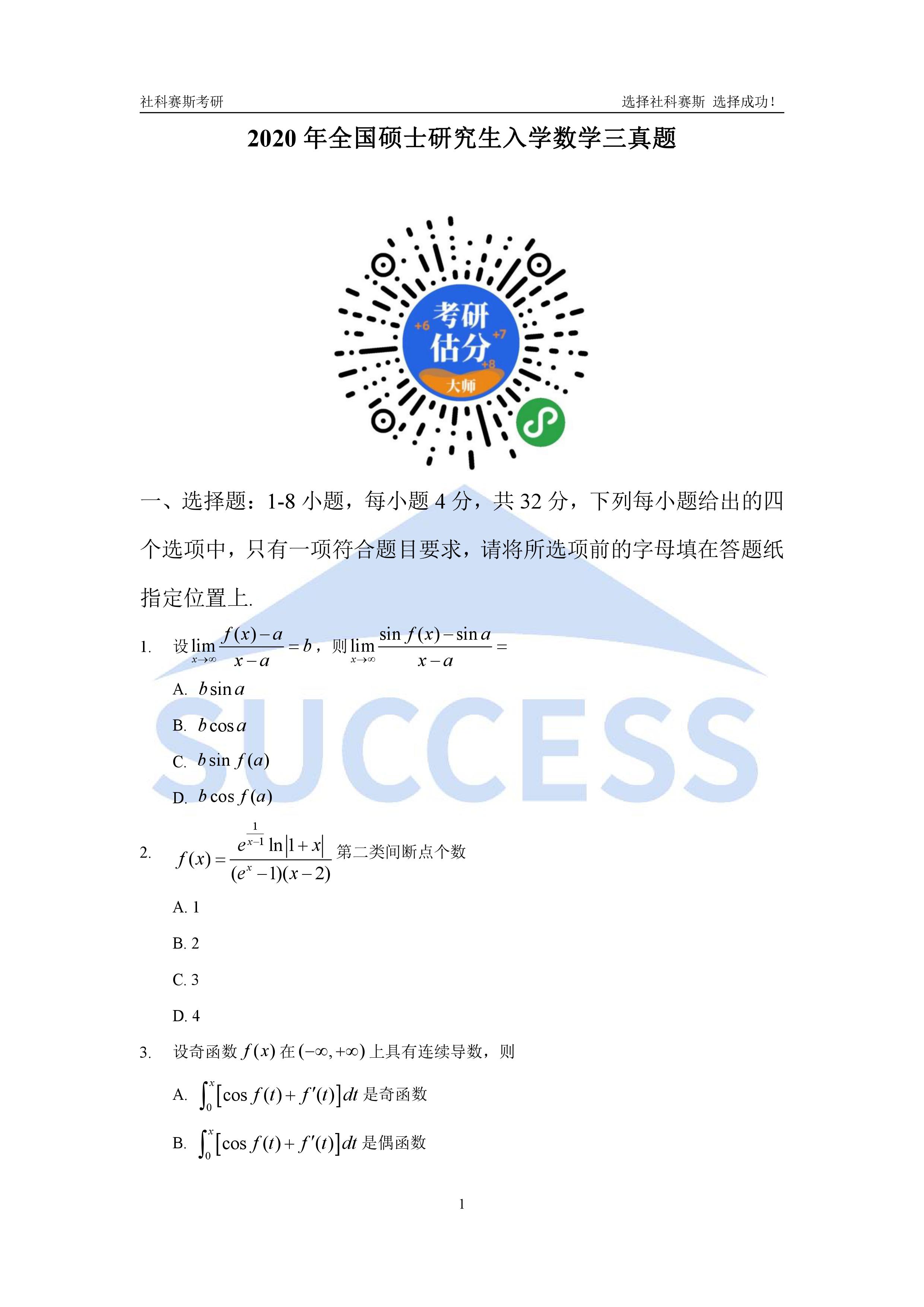 2020年全國碩士研究生考試考研數(shù)學(xué)(三)真題及解析