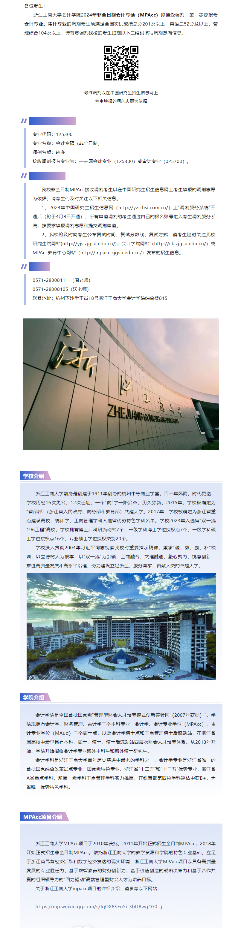 2024考研調(diào)劑:浙江工商大學(xué)2024年非全日制會(huì)計(jì)碩士(MPAcc)擬接受調(diào)劑生的通知