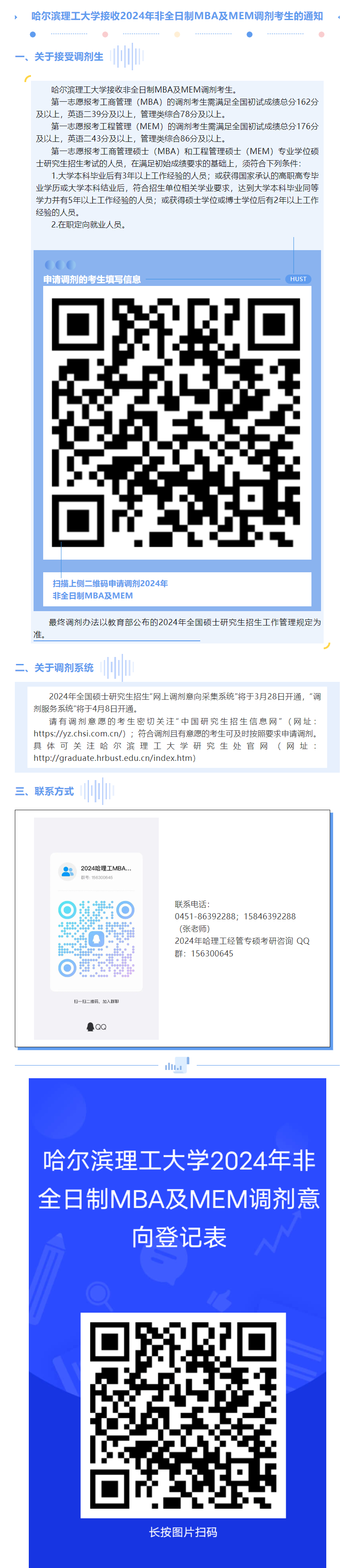 2024考研調(diào)劑:哈爾濱理工大學(xué)接收2024年非全日制MBA及MEM調(diào)劑考生的通知