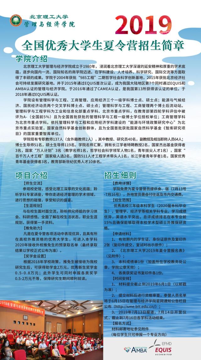 2020北京理工大學(xué)管理與經(jīng)濟(jì)學(xué)院保研夏令營(yíng)通知