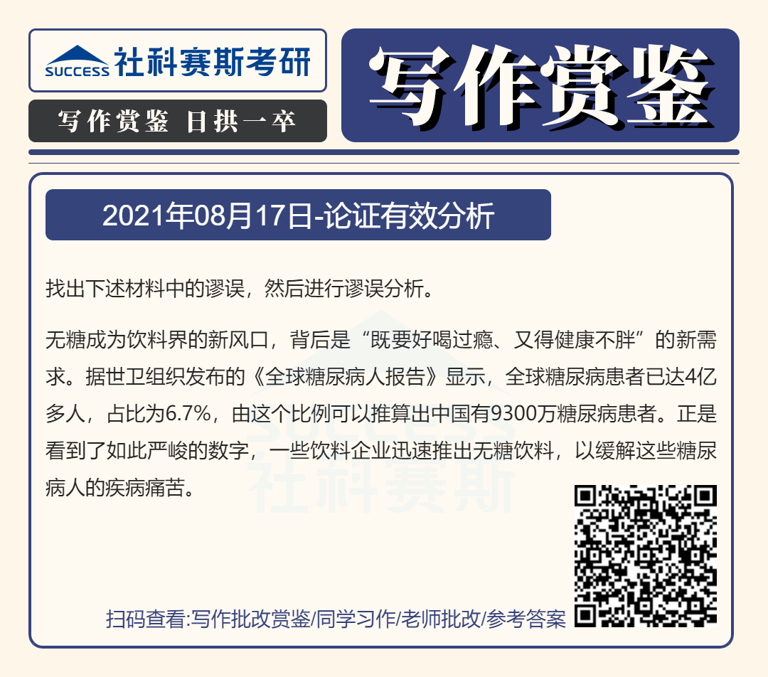 以上就是小編為大家整理“管理類聯(lián)考寫作備考:8月17日寫作鑒賞及答案”的全部內(nèi)容,希望各位考生堅(jiān)持利用起來,想要獲取更多內(nèi)容請持續(xù)關(guān)注社科塞斯考研網(wǎng)。
