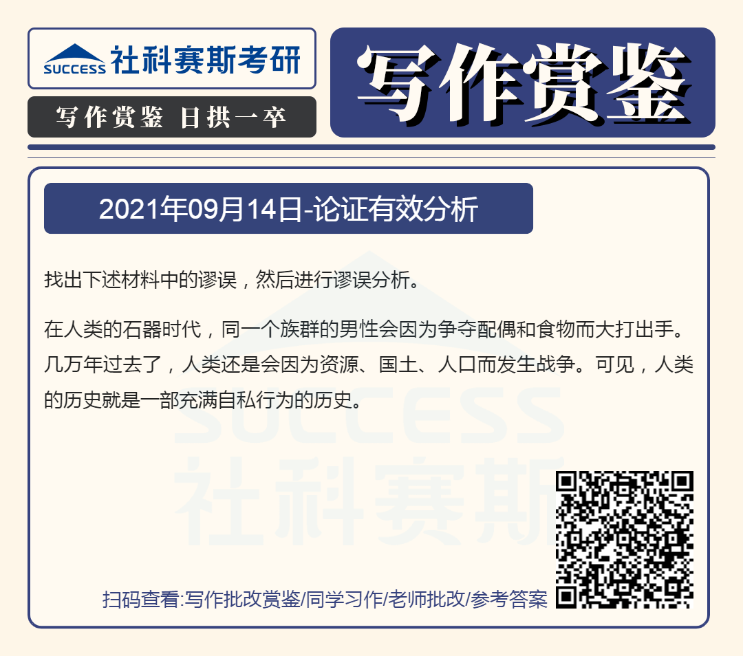 以上就是小編為大家整理“管理類聯(lián)考寫作備考:9月14日寫作鑒賞及答案”的全部?jī)?nèi)容,希望各位考生堅(jiān)持利用起來(lái),想要獲取更多內(nèi)容請(qǐng)持續(xù)關(guān)注社科塞斯考研網(wǎng)。