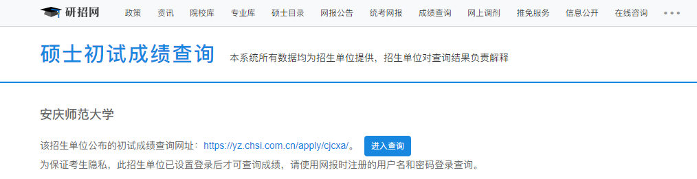 2021考研初試成績:安慶師范大學(xué)考研初試成績查詢?nèi)肟陂_啟!初試成績已公布!