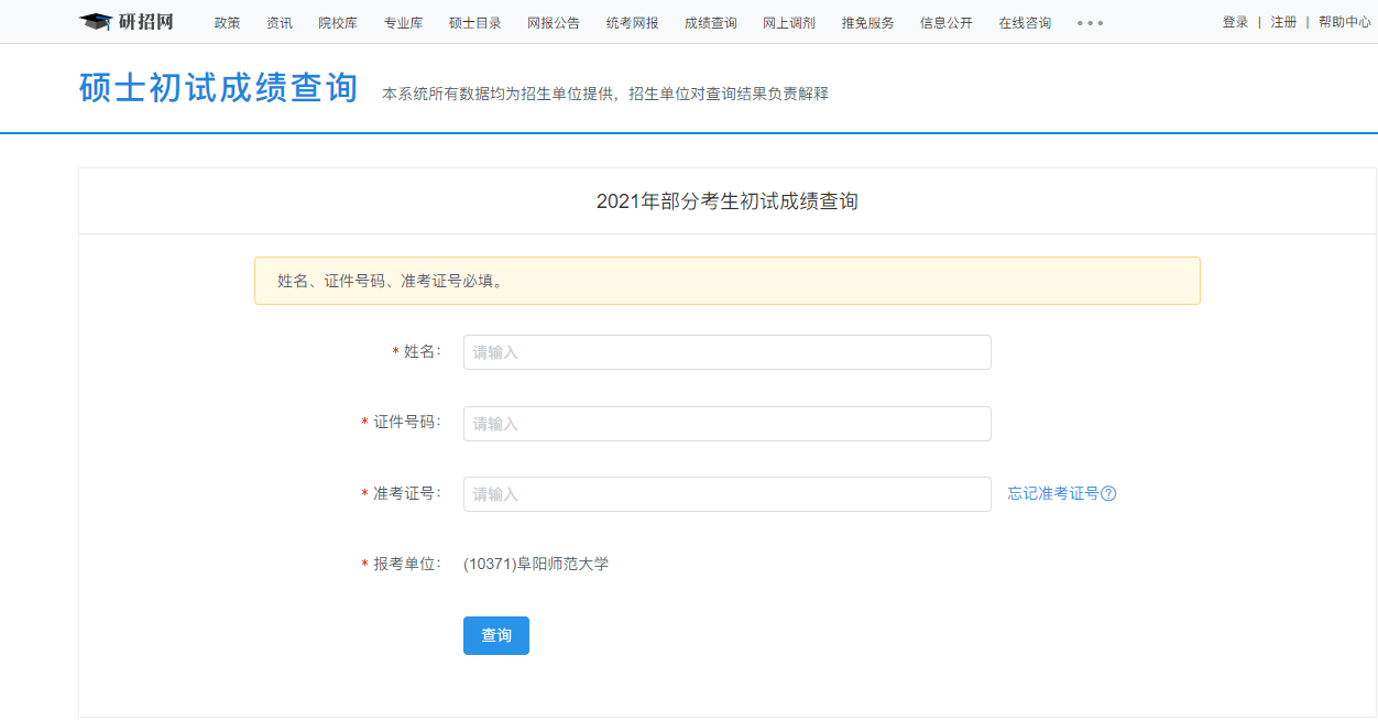 2021考研初試成績:阜陽師范大學(xué)考研初試成績查詢?nèi)肟陂_啟!初試成績已公布!