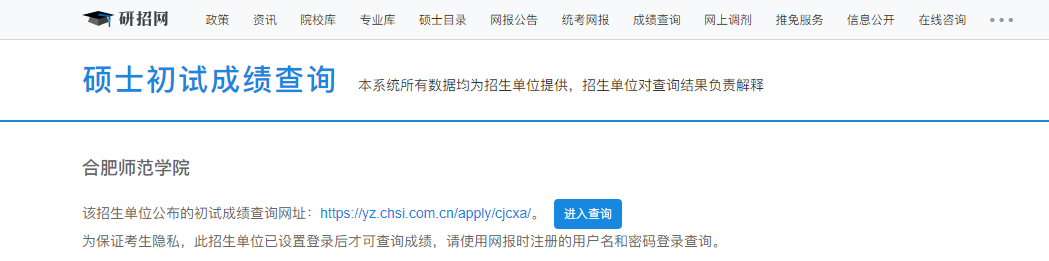 2021考研初試成績:合肥師范學院考研初試成績查詢?nèi)肟陂_啟!初試成績已公布!